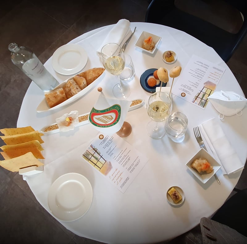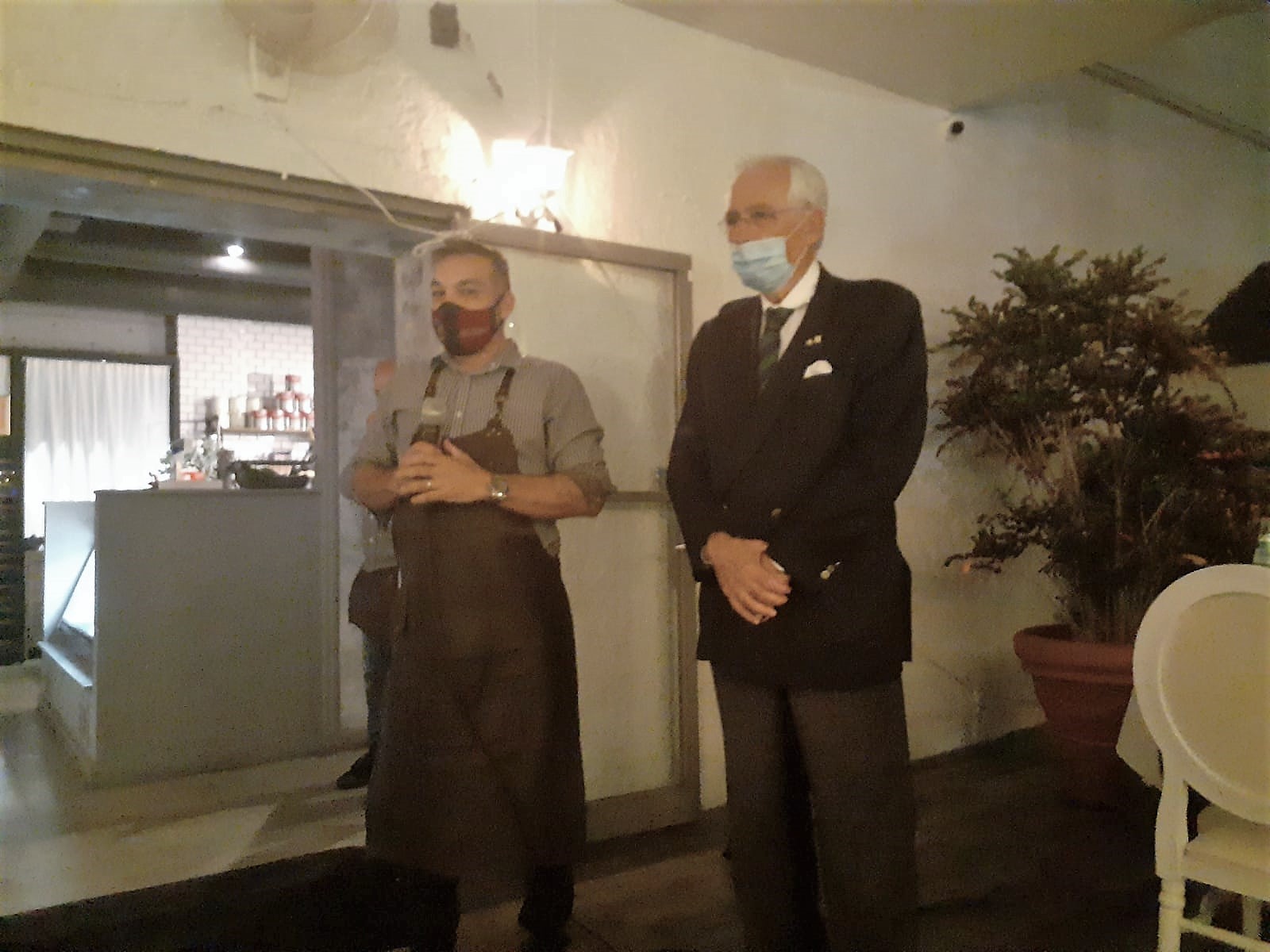 Un esperimento di "Conviviale Diffusa", nel breve intervallo di zona gialla in Abruzzo di soli 14 giorni, i primi di febbraio, durante i quali gli Accademici hanno visitato a turno un ristorante scelto dalla Consulta, il Ristorante La Neviera a Bucchianico, degustando un menu concordato ad hoc con i giovani gestori del locale e uguale per tutti. Al termine dell'intervallo di tempo stabilito per le visite, il consueto dibattito si è svolto invece in un incontro on line tra tutti gli Accademici. Particolarmente apprezzata, oltre all'esperienza gastronomica, è stata la formula scelta, che ha permesso e permetterà di essere accanto ai ristoratori in questo momento di grande difficoltà, e al contempo garantire agli Accademici di godere dell'atmosfera accademica in totale sicurezza e serenità. Foto 1. Paolo Albanese Vice Delegato e Mimmo D'Alessio Vice Presidente vicario e Delegato onorario. Foto 2. Accademici con congiunti in visita. Foto 3. Tavolo riservato per gli Accademici.