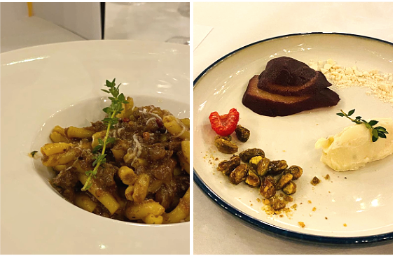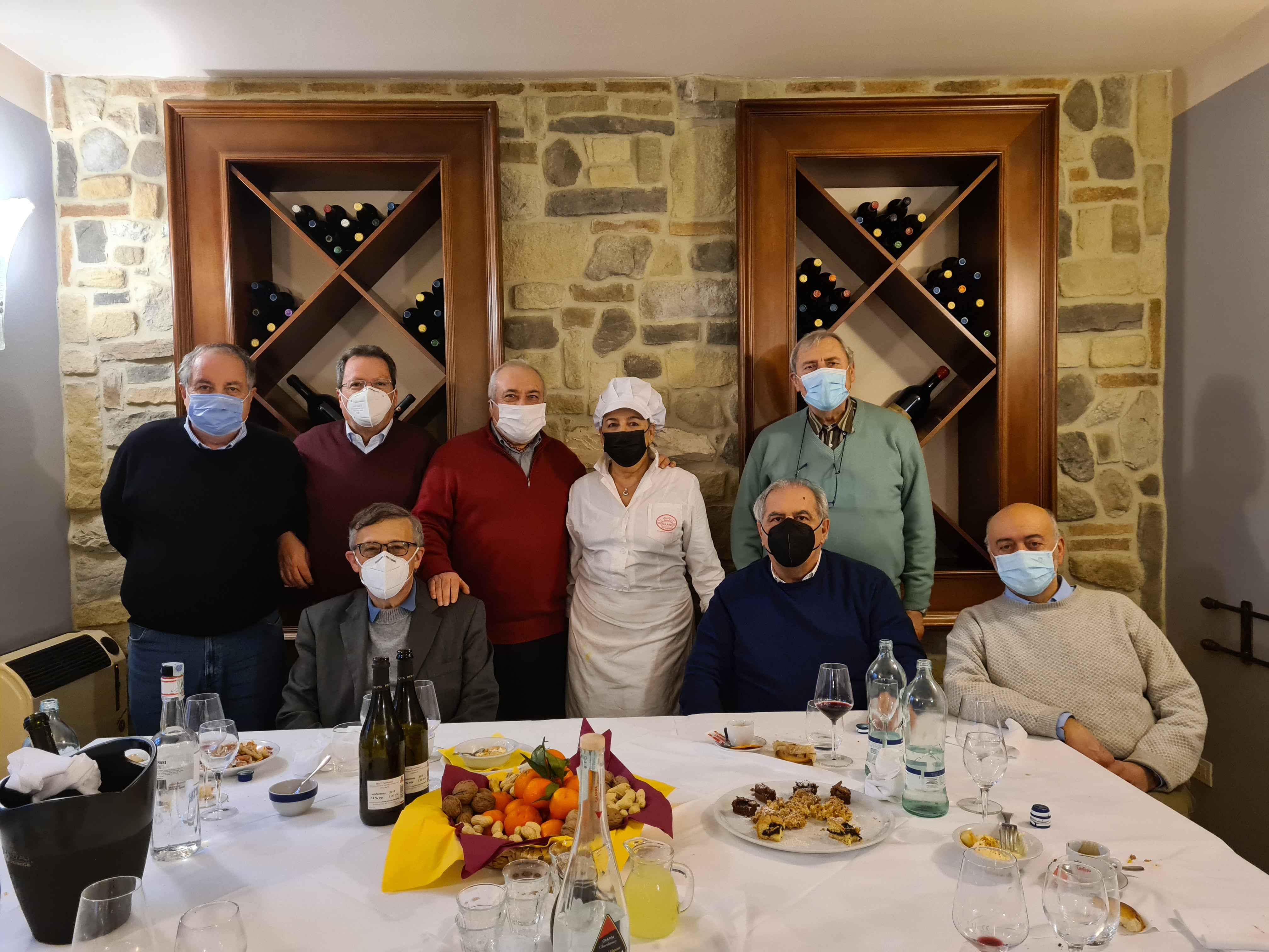 Bellissima riunione conviviale a Pavullo presso il Ristorante Albergo Corsini per la consegna dei Premi e per gli auguri. Nella colorata saletta riservata, preparata secondo le regole, la Delegazione si è ritrovata per gustare ottimo cibo, accompagnata dai racconti di poetici personaggi, densi di storia, cultura, qualità, passione, tradizione, che costituiscono i valori del territorio locale. Alla presenza dell’Assessore del Turismo e Promozione Turistica di Pavullo Cinzia Belloi sono stati consegnati i Premi assegnati nel 2020 ai presenti operatori del settore gastronomico: Diploma di Buona Cucina al Ristorante Albergo Corsini e Premio Massimo Alberini al Forno Tazzioli di Pavullo, Premio Dino Villani a Marisa Maria Tognarelli di Sestola, che si è distinta nella lavorazione artigianale del croccante. Foto 1. Assessore, Delegata Rosalba Caffo Dallari, Maria Pia, Francesca e Stella del Ristorante Albergo Corsini. Foto 2. Assessore, Delegata, Giuseppe Tazzioli del Forno Tazzioli. Foto 3. Assessore, Delegata, Marisa Tognarelli. Foto 4. Menu e piatti.