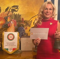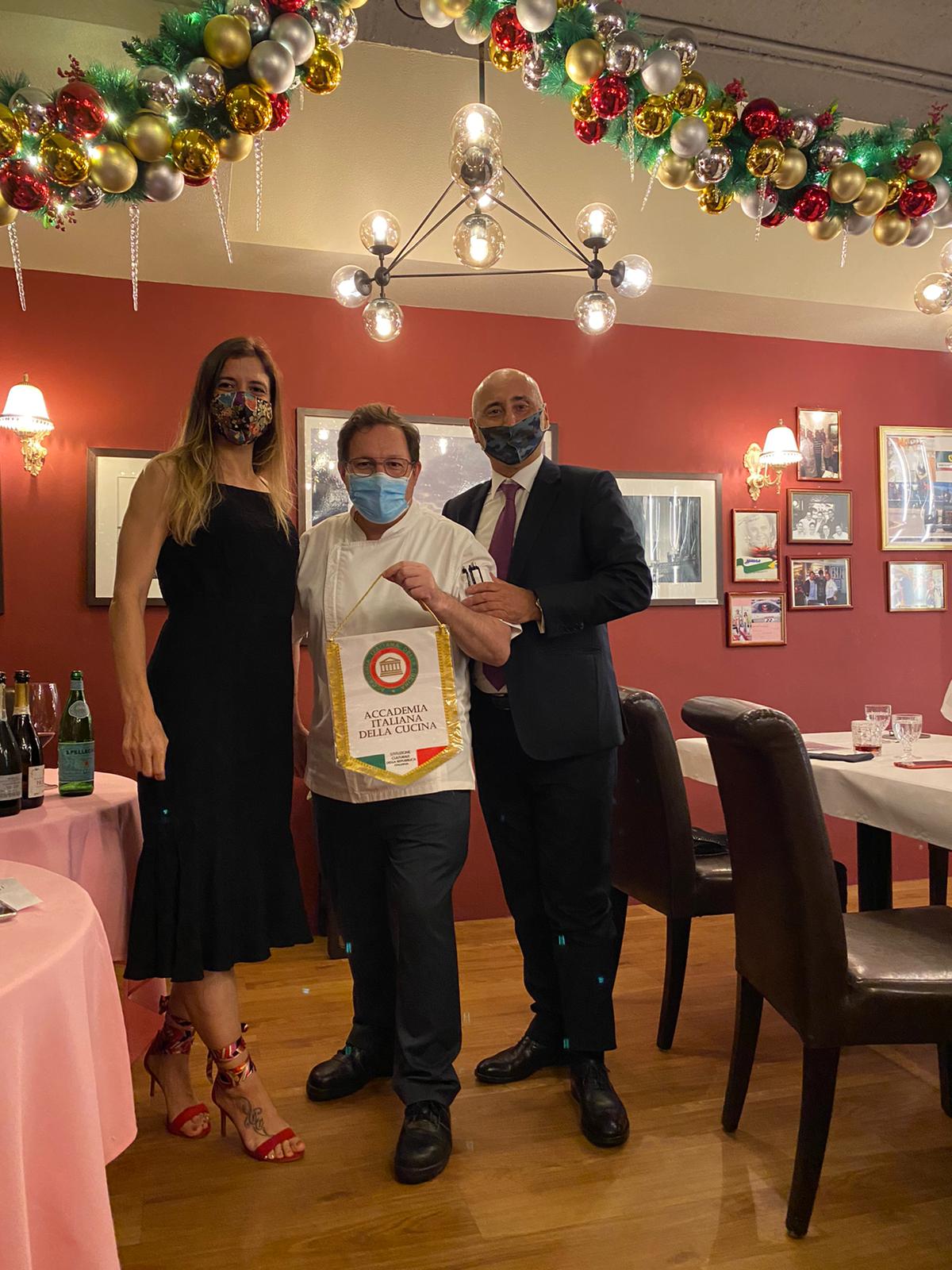Con le ripetute chiusure e riaperture di ristoranti a New York e con la nuova chiusura dei ristoranti all’interno, la Delegazione di New York ha pensato di organizzare una riunione conviviale virtuale via Zoom per lo scambio degli auguri tra Accademici. Dopo aver suonato la campana accademica, la Delegata Roberta Marini de Plano (foto 1 e 2) ha dato il via alla riunione conviviale a cui ha partecipato anche lo chef della serata Federico Perandin, padovano, gestore di “Il Pastaficio” di Greenwich (CT), che sarà presto presente a New York con il suo ristorante. Scatole con ingredienti per tre portate, menu e istruzioni per la preparazione sono state consegnate tramite Fedex. In apertura, il salmone marinato in agrumi e odori assieme alla focaccia, seguito dai ravioli Emilia, conditi con burro e salvia. Perandin ha spiegato la preparazione del ripieno secondo la ricetta dei tortellini dell'Emilia-Romagna con prosciutto stagionato 24 mesi, mortadella e carne di maiale. Lo chef ha mostrato come fare un’emulsione di burro, acqua di cottura e salvia per condire i ravioli, il tutto poi spolverato da Parmigiano Reggiano presente nella confezione. A conclusione, Pandoro con una crema di mascarpone. Dopo la cena e l’augurio per un Natale sereno, la Delegata ha invitato gli Accademici a parlare delle proprie tradizioni culinarie natalizie. Grande entusiamo e anche interesse mediatico per il “viaggio inaugurale” nella cucina della pandemia, ossia “Quarantine Cuisine”, l'iniziativa della Delegazione di New York per continuare a mantenere le tradizioni accademiche e per sostenere comunque la ristorazione.