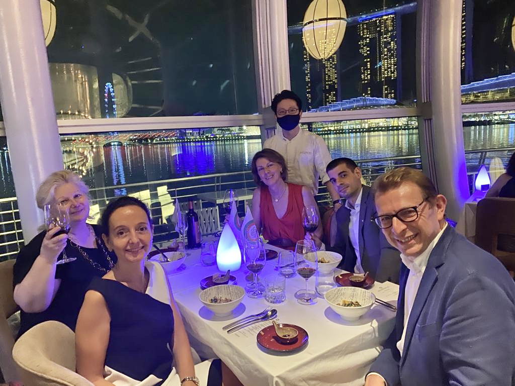 La riunione conviviale degli Auguri si è svolta presso il ristorante "Monti", nella suggestiva cornice della Baia di Marina South di Singapore. Nel pieno rispetto delle norme imposte dalle autorità l’evento è stato organizzato in quattro diverse serate 14, 15, 16 e 17 dicembre, che hanno visto riuniti cinque Accademici ognuna. Gradita la partecipazione e gli auguri di Natale portati dall’Ambasciatore e Accademico onorario S.E. Raffale Langella. I quattro Simposiarchi: Maria De Iorio, Valentina Righi, Giuseppina Pravato e Alberto Martinelli hanno curato il menu, preparato dallo chef Felix Chong, che ha visto protagonisti piatti della tradizione natalizia italiana tra cui ravioli di ricotta, carne arrosto e panettone. Un servizio attento e gentile ha accompagnato la serata e deliziato gli Accademici, sopratutto all’arrivo delle “sorprese di menu”: il cotechino amuse bouche e gli struffoli che hanno apportato una doppia dolcezza alla cena. Durante le serate, svoltesi all’insegna della più spontanea convivialità, sono state consegnate le insegne a due nuovi Accademici, Lawrence Basapa e Maria De Iorio.