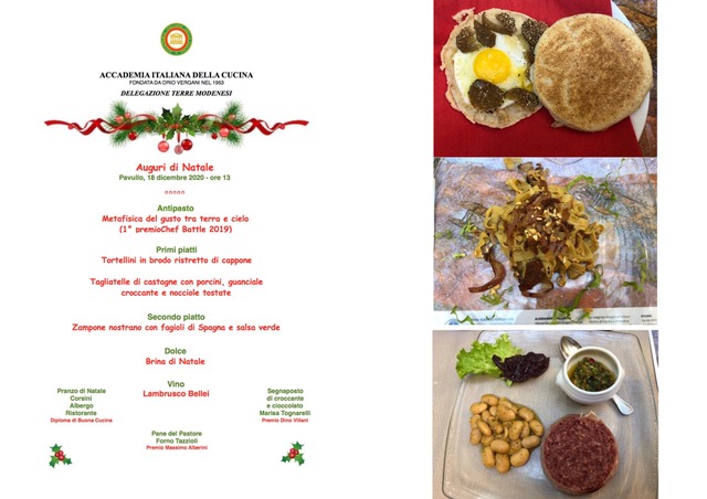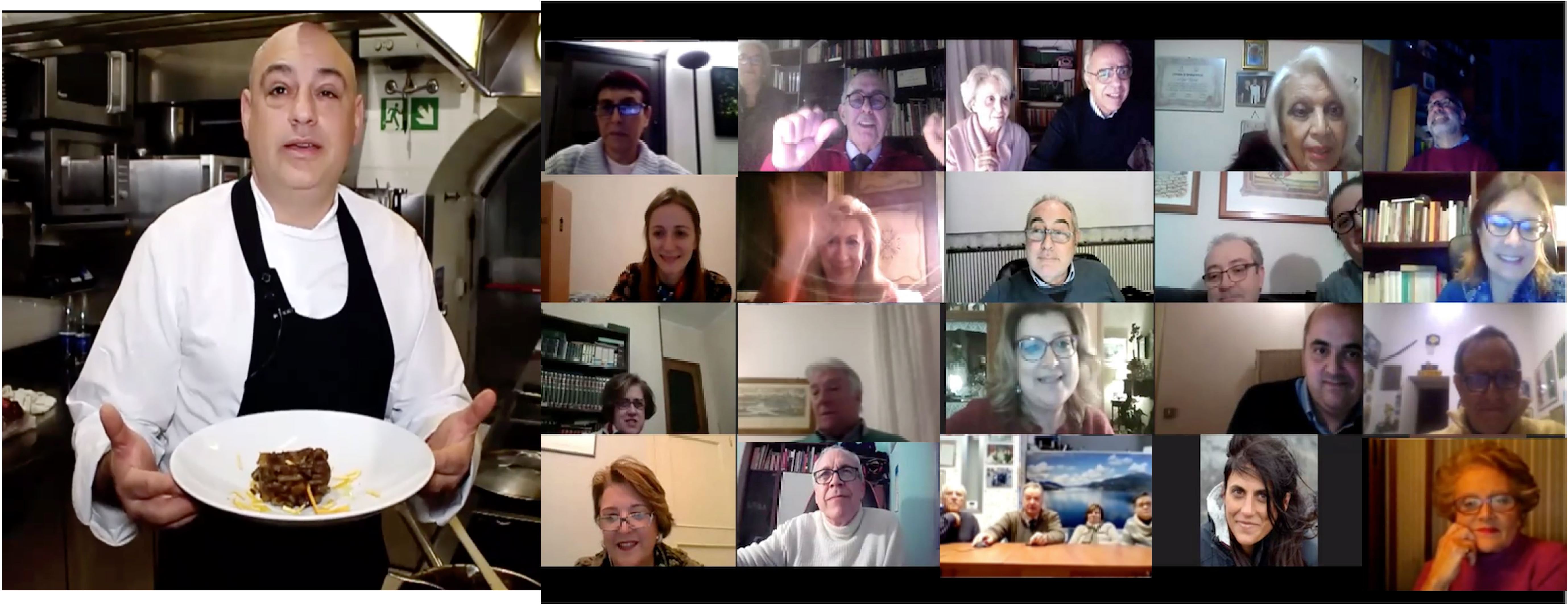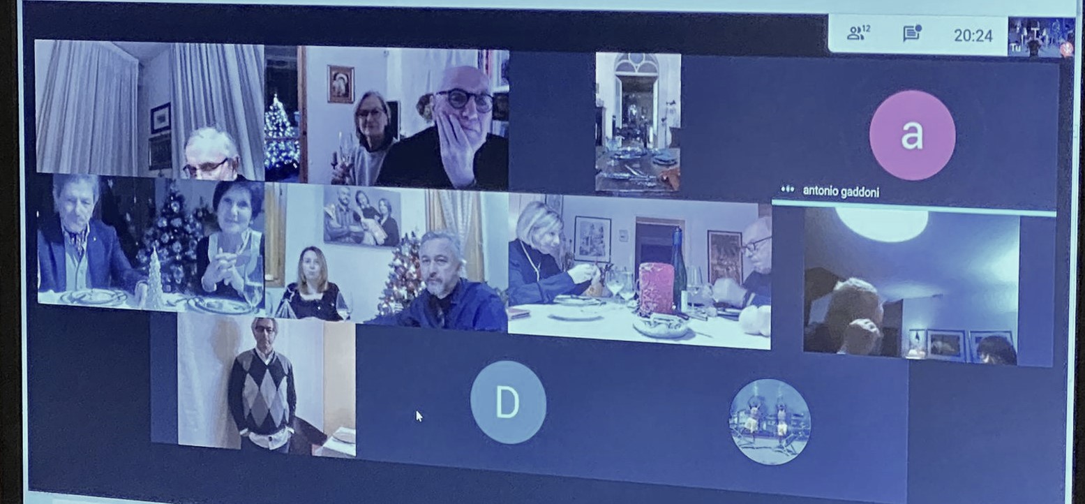 L'emergenza sanitaria non ha impedito agli Accademici imolesi di ritrovarsi per la tradizionale cena degli auguri ricorrendo alla consegna con asporto. La connessione video ha lenito, seppur in parte, la parte fondante della convivialità vestita nell'occasione dall'abbraccio virtuale. Non è mancato comunque lo scambio di commenti e pareri sugli ottimi piatti ben rappresentati dallo Chef Max Mascia del ristorante San Domenico di Imola con dei video tutorial su preparazione e impiattamento. Nelle foto, Accademici in collegamento e dal menu: cotechino su crema di lenticchie e ravioli di faraona con crema al marsala e tartufo nero.