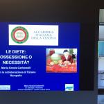 Si è tenuta sulla piattaforma digitale Zoom, la prima sessione del convegno “A tavola con consapevolezza” organizzato dalla Delegazione di Pescara. Dopo i saluti del Delegato Giuseppe Fioritoni e del Coordinatore territoriale Giovanni Maria D’Amario, il Vice Presidente vicario Mimmo D’Alessio, moderatore e coordinatore dell’evento, ha introdotto le interessanti e coinvolgenti relazioni della psicologa Roberta Necci su “La mente in tavola: un percorso di consapevolezza alimentare”, della nutrizionista Maria Grazia Carbonelli su “Le diete: ossessione o necessità” e del giornalista Sergio Grasso su “La gastrosofia: la scienza del buon mangiare”. In chiusura, i saluti del Presidente onorario Giovanni Ballarini, che sarà relatore nella seconda sessione del convegno, in programma per il prossimo 26 marzo.