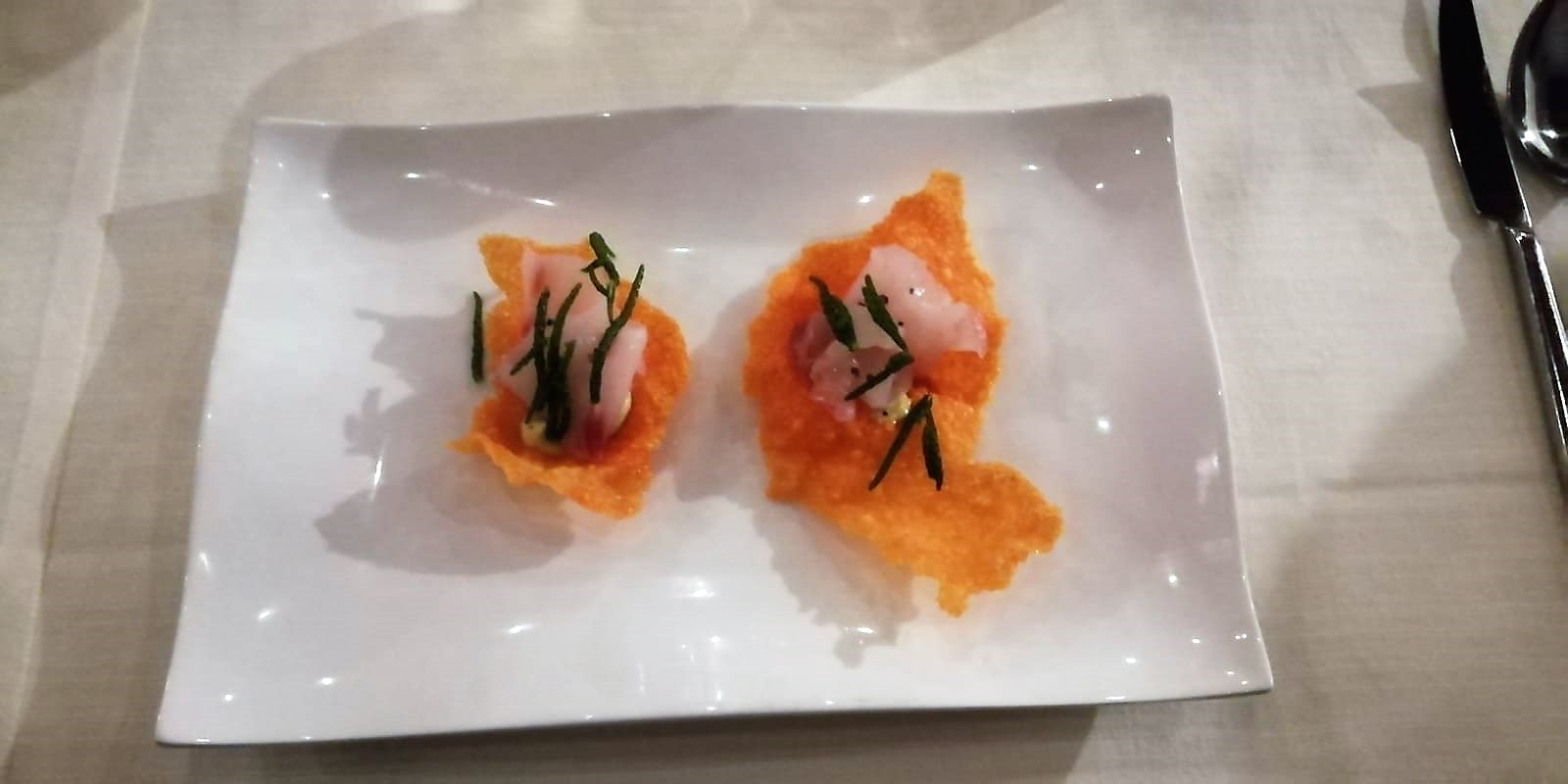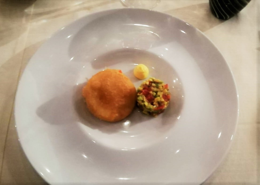 La Delegazione di Riccione-Cattolica ha organizzato la Cena Ecumenica del 2020 presso il ristorante Controcorrente di Morciano di Romagna. Interessantissimo momento culturale della giovane dott.ssa Martina Monaco che ha relazionato sulle caratteristiche biochimiche del friggere, sulle qualità organolettiche del fritto e sull’influenza neuroemozionale del fritto (foto 1). Menu di ricerca e di innovazione in quanto il territorio di Riccione-Cattolica non vanta tradizioni di fritto. Lo chef Alessandro Lerario (foto 2) ha liberato fantasia e professionalità. Massimo apprezzamento per il croccante di riso soffiato con carpaccio di spigola, salicornia e maionese al tartufo (foto 3), molto gradito il cassoncino di polenta fritto con polpa di granchio e guacamole (foto 4). Conclusione della serata con gli apprezzamenti di tutti per la cena, i complimenti all’estro delle chef Alessandro Lerario e la consegna del volume dell'Accademia “Fritti, Frittate, Frittelle” alla dott.ssa Monaco.