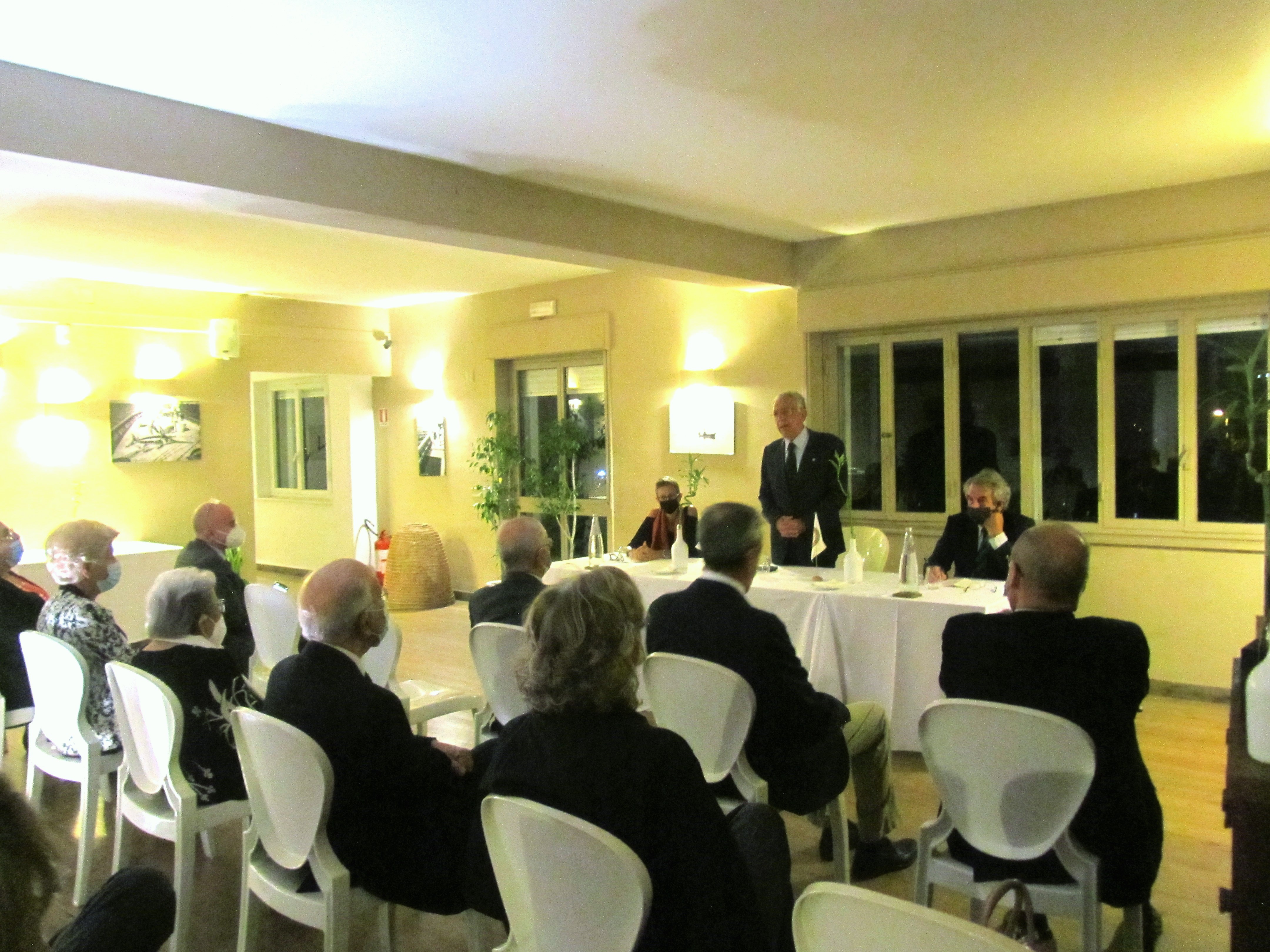 La Delegazione di Messina si è ritrovata in piena sicurezza per la celebrazione della Cena Ecumenica presso il ristorante "Grecale". La riunione conviviale è stata preceduta da un momento culturale (Foto 1) incentrato sula lettura magistrale di Rosalia Cavalieri, professore ordinario di Filosofia del linguaggio nell’Ateneo di Messina e sulla presentazione del voume dedicato al tema dell’anno. Il Delegato ha illustrato la filosofia delle preparazioni dello chef servite impeccabilmente ai tavoli imbanditi secondo le norme (foto 2). La sorprendente acciuga ripiena di ricotta (foto 3) e la delicata e saporita omelette (pisci d’ovu) con le cozze (foto 4) sono state due delle gradite sorprese cucinarie.
