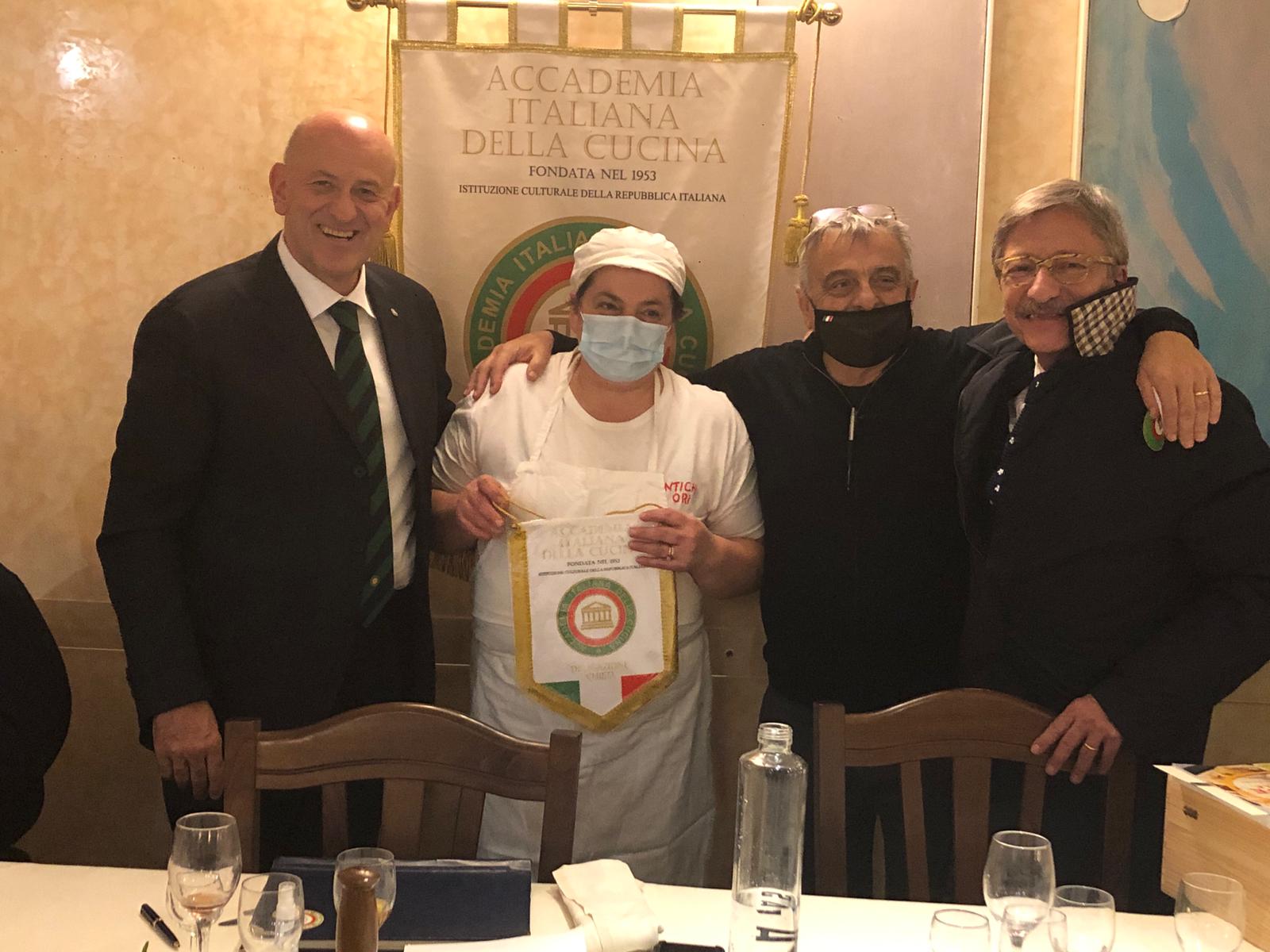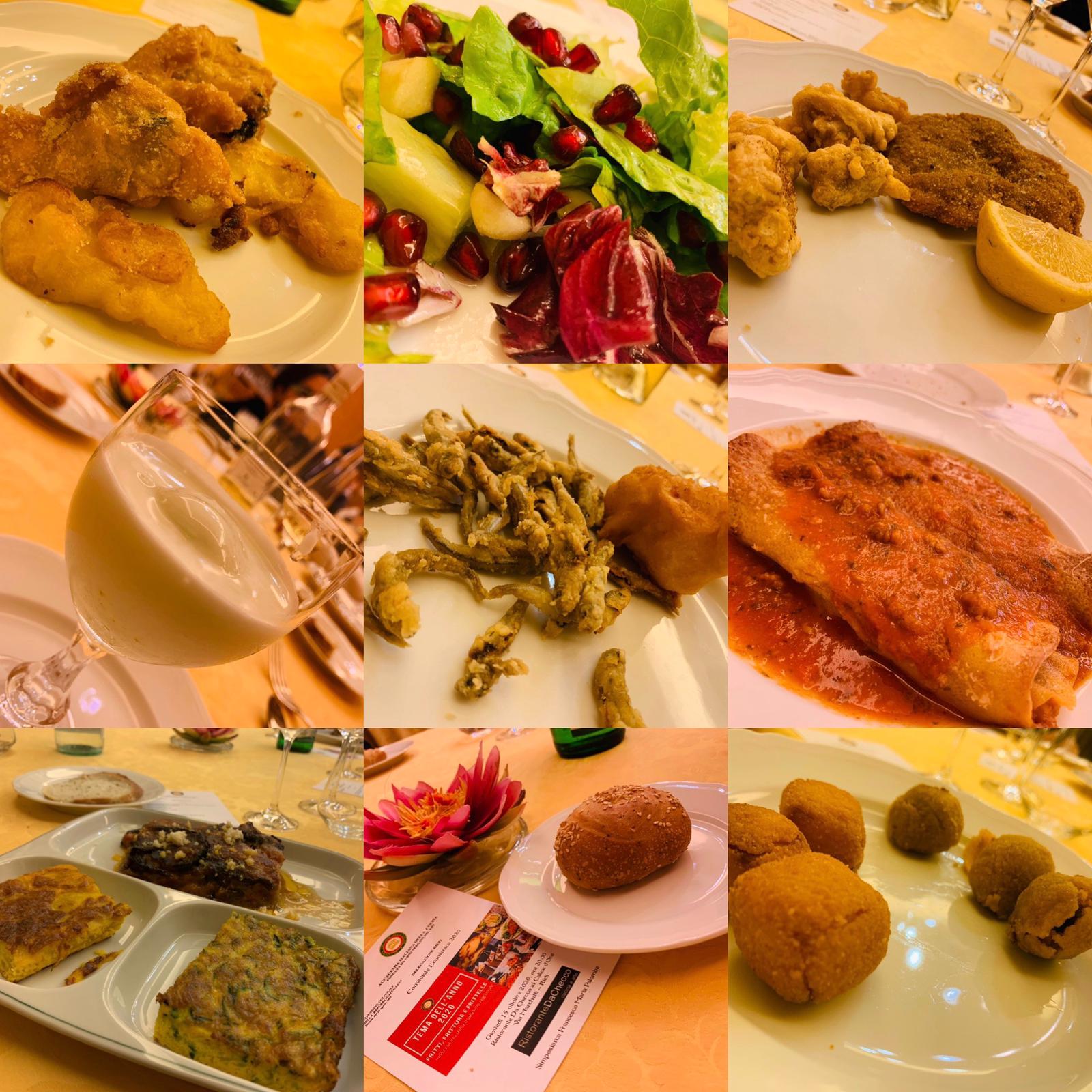 Con la piena consapevolezza del momento che stiamo vivendo e quindi nel pieno rispetto delle regole imposte, si è svolta il 15 ottobre, presso il ristorante “Da Checco” di Rieti, la tradizionale Cena Ecumenica, quest'anno sul tema “fritti, frittate e frittelle”. La serata ha rappresentato un vivace momento di arricchimento culturale dal punto di vista gastronomico, storico, ambientale e civile, con una relazione sulla storia del fritto tenuta dal Delegato Francesco Maria Palomba. Hanno partecipato alla Conviviale il Comandante Provinciale dei Carabinieri col. Bruno Bellini, il Presidente della Provincia di Rieti ing. Mariano Calisse ed il Vice Questore Vicario dott.sa Maria Grazia Giommi. Nel corso della serata si è anche celebrato l'ingresso dei neo Accademici Giuseppe Grassi, Laura D'Ignazio e Stefano Trasei. I piatti della serata: crema e olive fritte, frittata di cipolle, frittata di zucchine, melanzane alla parmigiana, stracci antrodocani, lattarini e persico fritti, sorbetto, cervello, animelle e costolette agnello fritti, insalata mista con frutta, mela fritta, frittelle di San Giuseppe.
