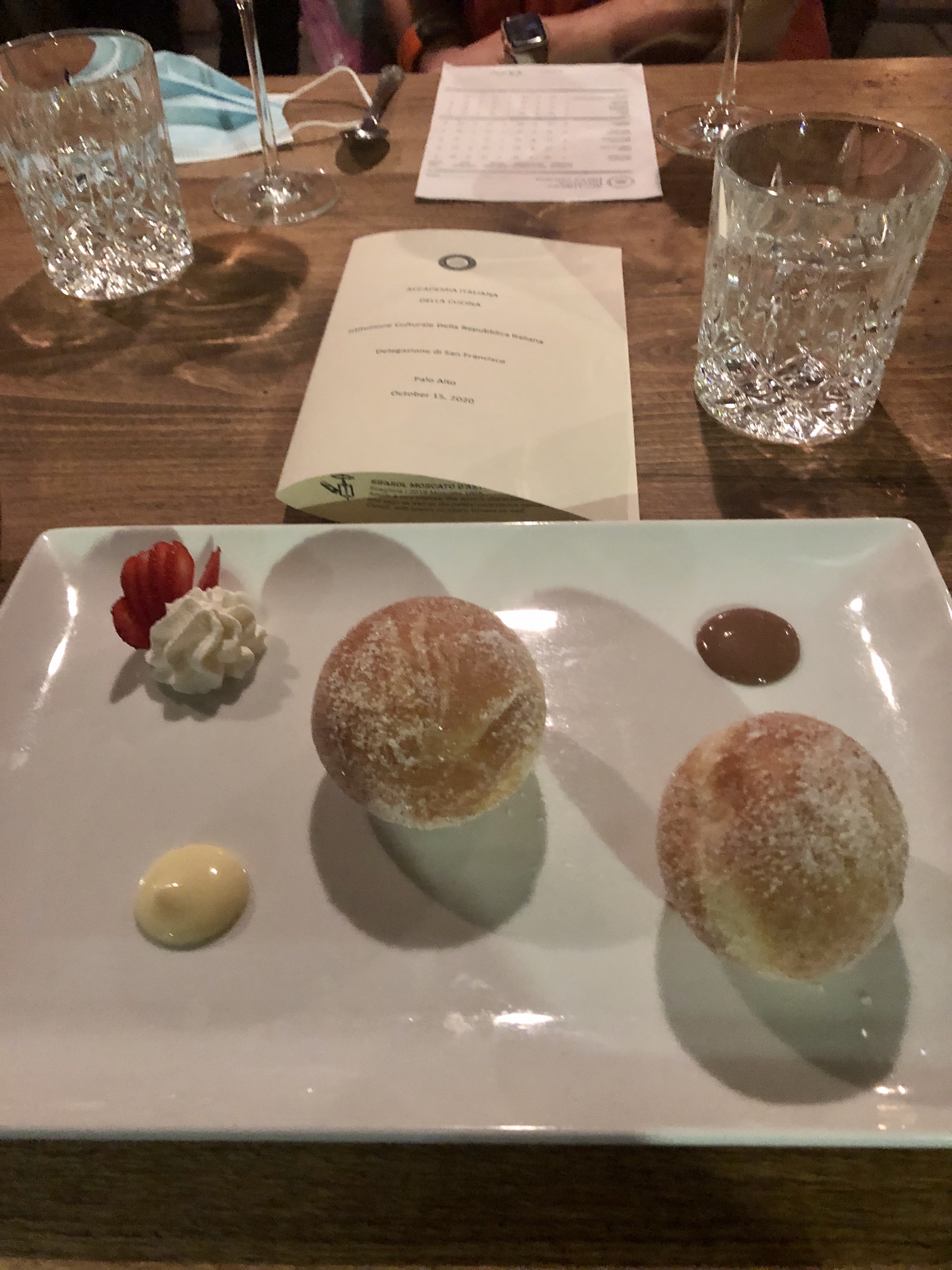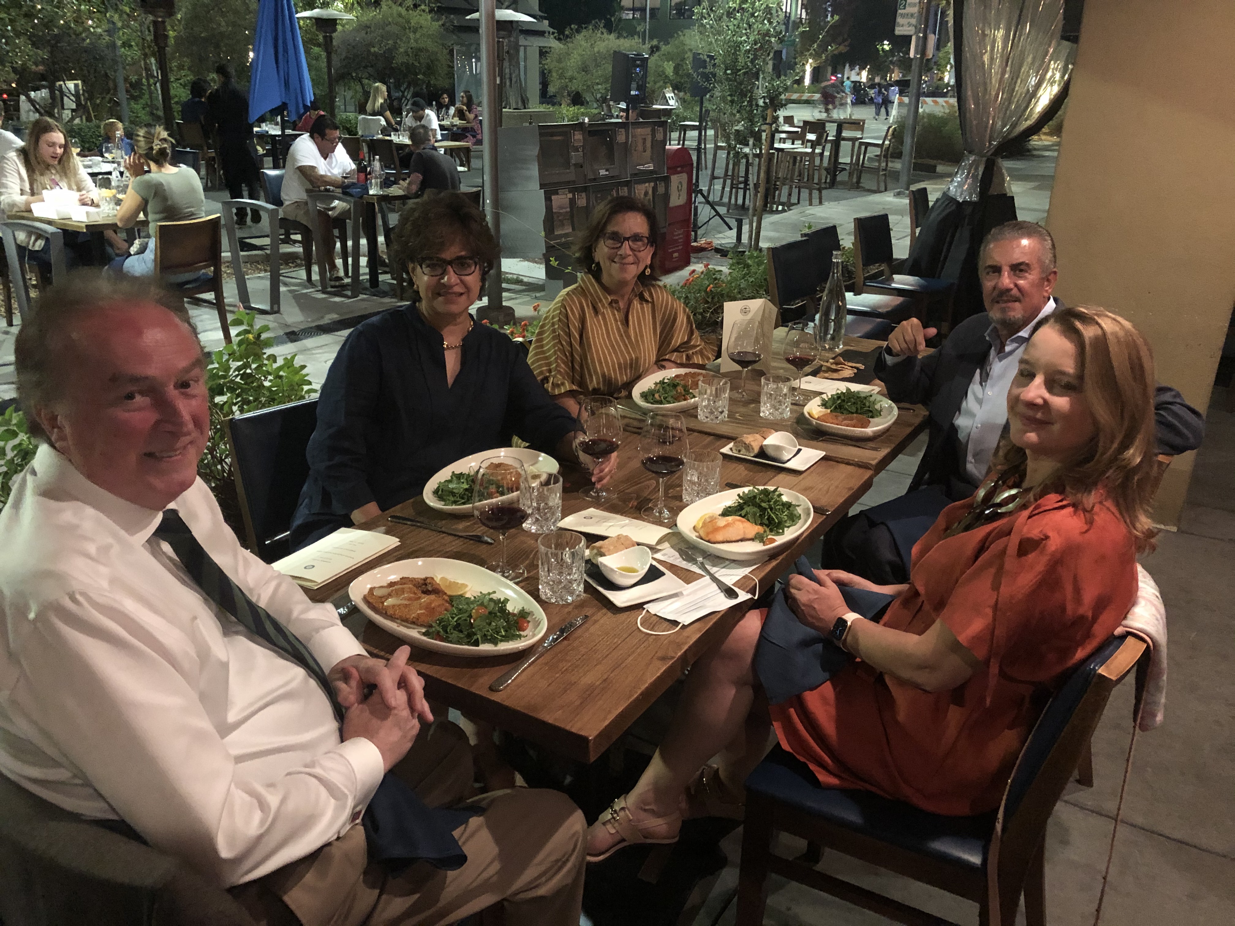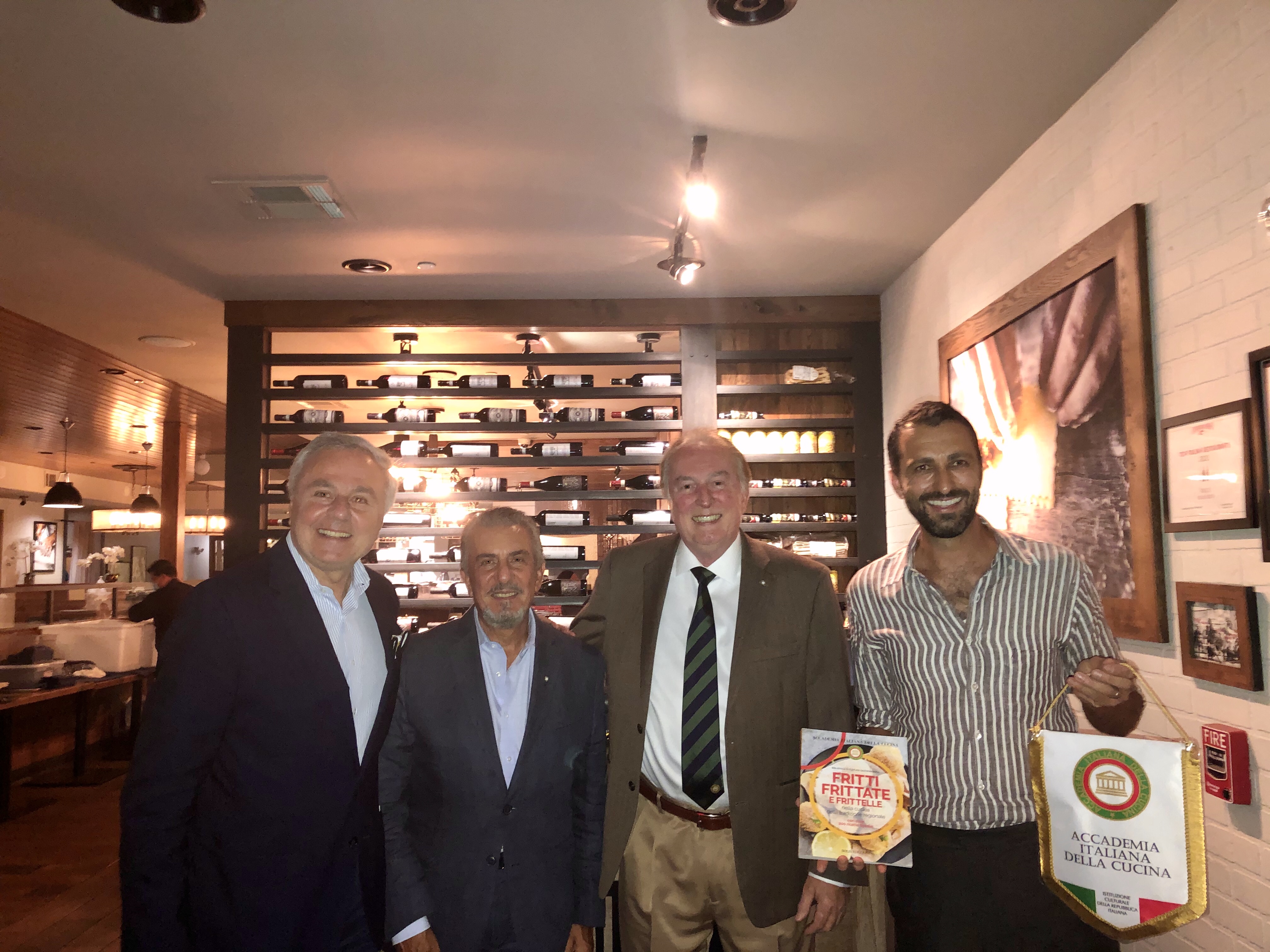 Una rappresentanza della Delegazione di San Francisco si è recata nella Silicon Valley (a circa un’ora d’auto dal centro città) per celebrare, nonostante la pesante situazione locale, la Cena Ecumenica 2020. Il Ristorante “iTalico”, scelto dal Simposiarca Paolo Zannetti, ha proposto una cena al di sopra di tutte le aspettative. Molto accogliente il dehors che ha garantito agli Accademici il rispetto delle misure di sicurezza vigenti (foto 1). Foto 2. Da sinistra, il Delegato Claudio Tarchi, il Consultore Antonio Oriti, il Simposiarca Paolo Zannetti consegnano al Proprietario Michael Oliverio il libro sul tema dell'anno e il guidoncino accademico.