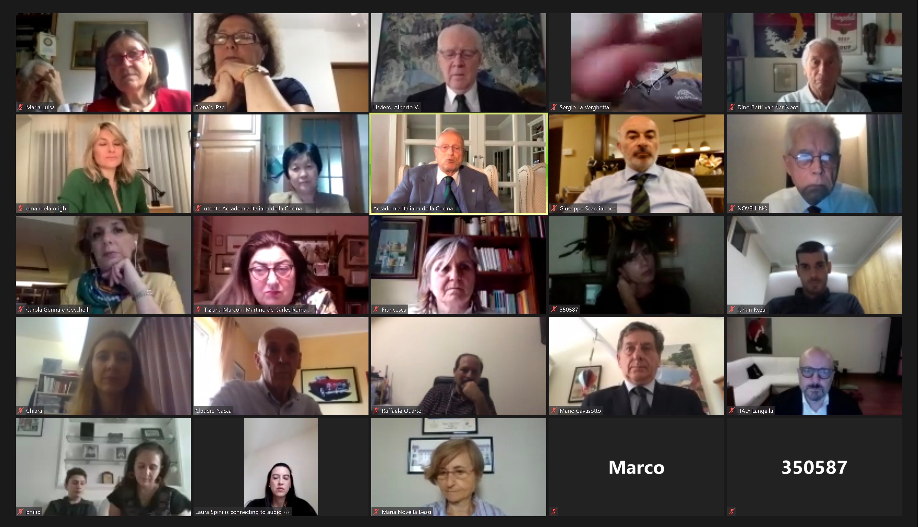 La Delegazione di Tel Aviv ha tenuto una "video Conviviale" per discutere sulle possibili attività future (video conferenze, chef lessons, valorizzazione dei ristoratori di cucina italiana in Israele attraverso gli incontri virtuali) e sulle attività da organizzare urgentemente al termine del lockdown. Gli Accademici hanno anche fatto un brindisi per l'anniversario della Liberazione d'Italia e per la Festa dell'Indipendenza di Israele che si festeggiano nello stesso periodo. Da sinistra in alto: Accademica Deborah Sinai, Delegata Cinzia Klein, Tesoriera Alda Chen, neo Accademico Roberto della Rocca, Accademiche Aliza Radian e Nessia Laniado.