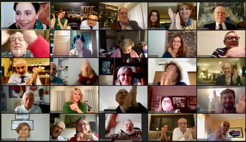Si è tenuto il 30 maggio il Webinar organizzato dalle Delegazioni di Singapore e Buenos Aires: “Il cibo italiano nel tango. L’autenticità nella cucina di emigrazione”. L'incontro su piattaforma virtuale si è aperto con un saluto del Segretario Generale Roberto Ariani. I Delegati organizzatori Giorgio Maria Rosica e Alberto Lisdero hanno espresso soddisfazione per il riscontro avuto dall'evento e hanno auspicato maggiori occasioni di collaborazione. A seguire, un saluto degli Ambasciatori italiani di Singapore e Giacarta e del Consigliere economico commerciale dell’Ambasciata d’Italia a Buenos Aires. Tra gli oltre 50 ospiti collegati da 10 Paesi, hanno partecipato anche i Delegati di Milano, Milano Duomo, Roma Eur e Budapest e i Legati di Giacarta, Mumbai e Tokyo. In collegamento da New York l’ospite d’onore Dario Vaccaro, produttore e manager del Quintetto Astor Piazzola.