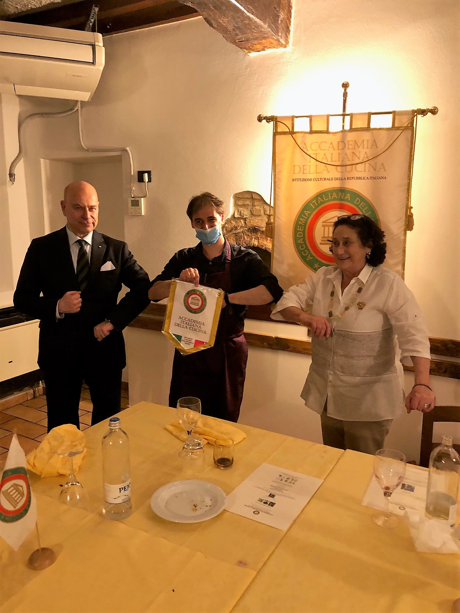In occasione della prima visita dopo il lockdown, la Delegazione di Utrecht ha fatto ritorno al premiato ristorante "La Rusticana" di Arnhem sotto la guida del Simposiarca Rob Cozzi. Lo chef/patron Luciano Frassi (foto 2) e il figlio Tiziano, sommelier, sono riusciti a superare le aspettative dei commensali. La serata é stata culturalmente allietata dalla relazione dell’architetto Peter Stokmans. In apertura, un eccellente aperitivo ha allietato gli Accademici disposti ai tavoli in piena sicurezza. Da non dimenticare gli accopiamenti con i vini, sempre ben introdotti dal sommelier Tiziano Frassi. Un sentito applauso per la brigata bianca e nera ha concluso la serata con piena soddisfazione dei partecipanti. Foto 1. Il Delegato Aris Spada. Foto 3. Capesante in lardo di colonnata con porcini e polenta morbida. Foto 4. Plin allo stracotto di agnello con sugo e gremolata.