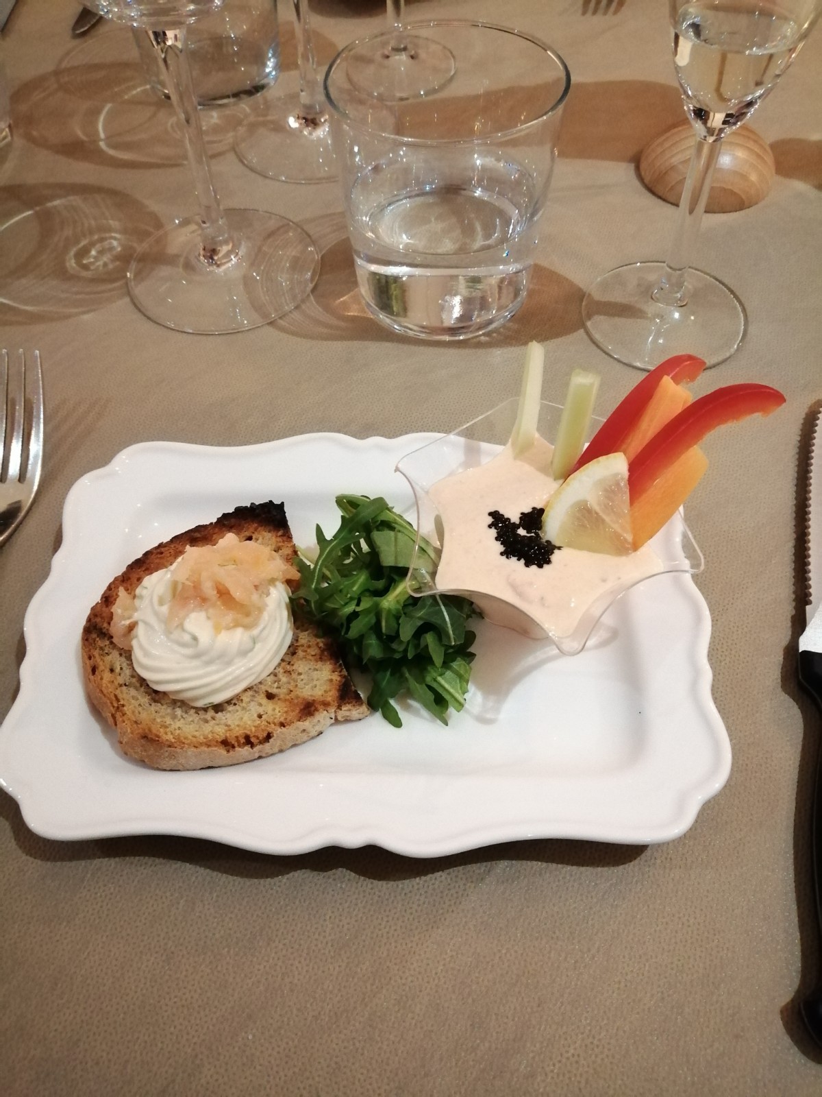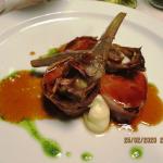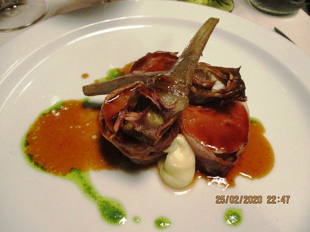 La riunione conviviale di febbraio ha vissuto il primo approccio con il nuovo ristorante "Controluce", arredato con originalità ed eleganza, aperto da alcuni mesi a Imola nelle adiacenze della centrale piazza Matteotti. Territorio, tradizione con alcuni spunti innovativi, hanno caratterizzato i vari piatti. Ben riuscito l'abbinamento dei vini e servizio attento. Non è mancato un convinto plauso finale alla giovane brigata di cucina. Foto1. Un tavolo con Accademici. Foto 2. Il Delegato Antonio Gaddoni commenta i piatti con la brigata di cucina. Foto 3. Coda di rospo. Foto 3. Interpretazione del cannolo.