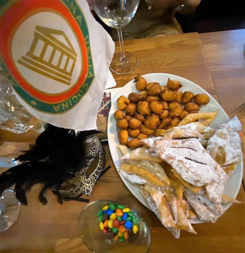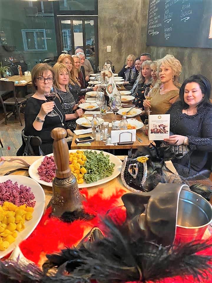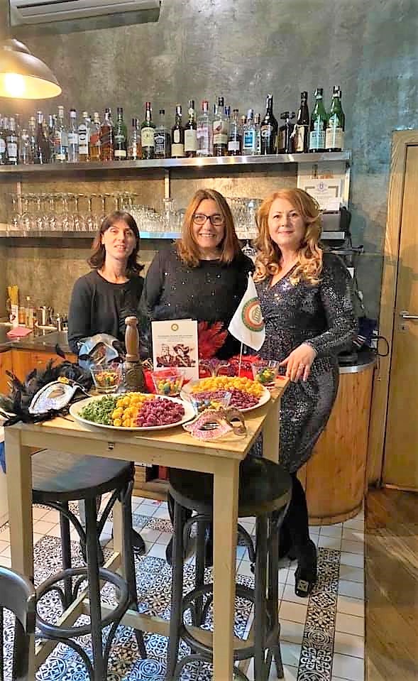 La Delegazione di Sofia ha iniziato l’anno accademico 2020 con una riunione conviviale sul tema “Cibo, Maschere e...Amore!” presso il ristorante “Forno Cipollini”. La cena è stata preceduta da una discussione sulle tradizioni del Carnevale in diverse regioni d'Italia: maschere e ricette tradizionali. Ospite della serata Maria Angela Parisi che ha preparato, per l'allestimento dei tavoli, pasta colorata e pasta a forma di cuore. Foto 1 (da sinistra). La proprietaria Miglena Duhovnikova-Giorgi, Maria Angela Parisi, la Delegata Penka Nesheva. Foto 2. Accademici e ospiti. Foto 3. Castagnole e chiacchere. Foto 4. Garganeli con speck e gorgonzola.