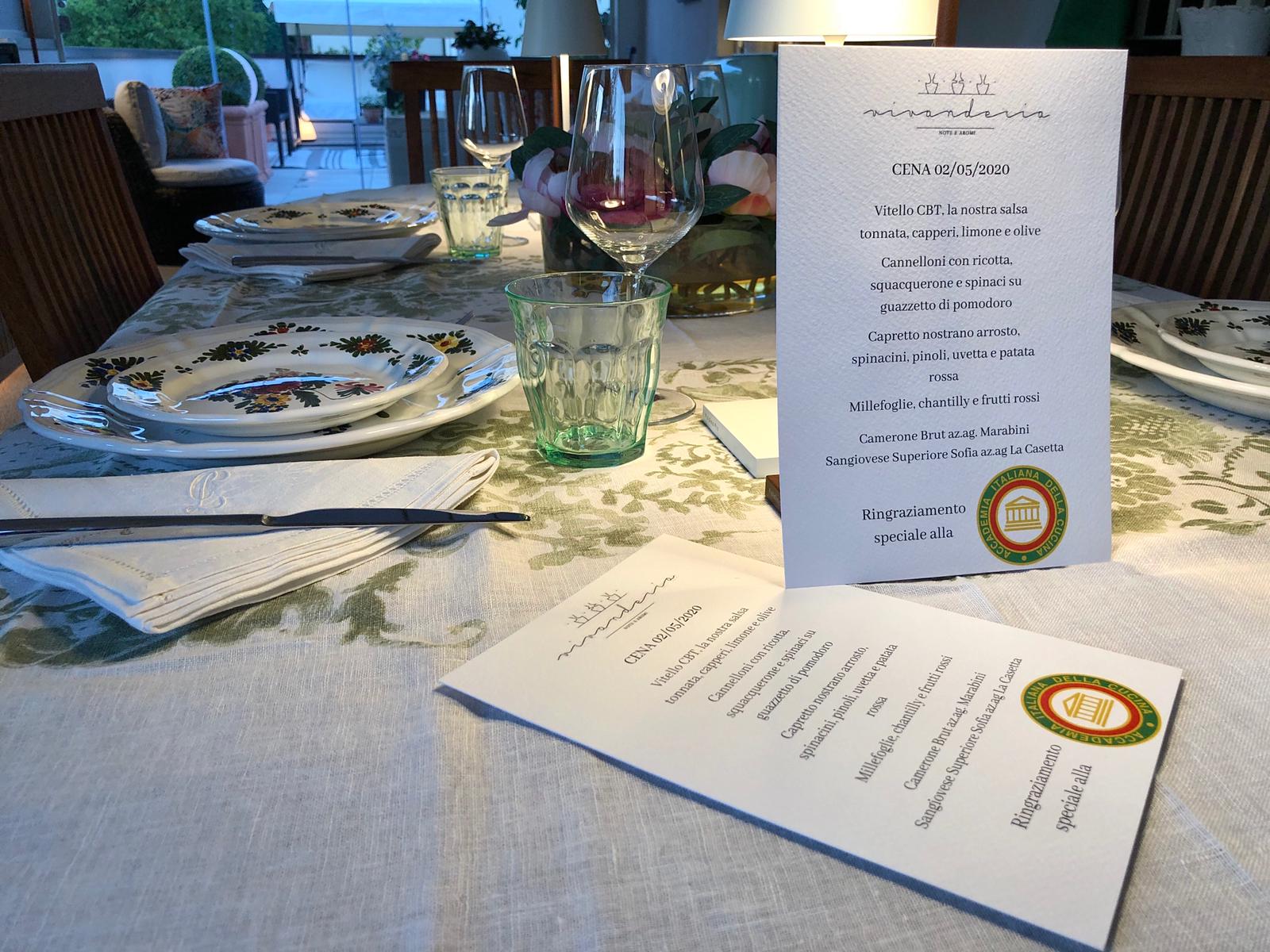 La convivialità e l'amicizia rappresentano l'arma migliore per combattere i momenti più difficili del nostro vivere civile e, l'anima accademica che è intrisa di questi sentimenti, ha mollato gli ormeggi dopo un lungo e doveroso ancoraggio. E lo ha fatto ricorrendo alla consegna a casa dei pasti con un unico menu servito a tutti gli Accademici nelle loro sale da pranzo. Sale tutte collegate in videochiamata così i colloqui e gli abbracci virtuali tra tutti gli Accademici hanno alleviato la mancanza della vicinanza fisica. Non è mancato il corale plauso finale al cuoco Michele Quitadamo del ristorante "Vivanderia" e al puntuale servizio di consegna. Foto 1. Il tavolo del Delegato Antonio Gaddoni. Foto 2. Delegato e Accademici in videochiamata. Foto 3. La consegna a casa. Foto 4. Il menu.