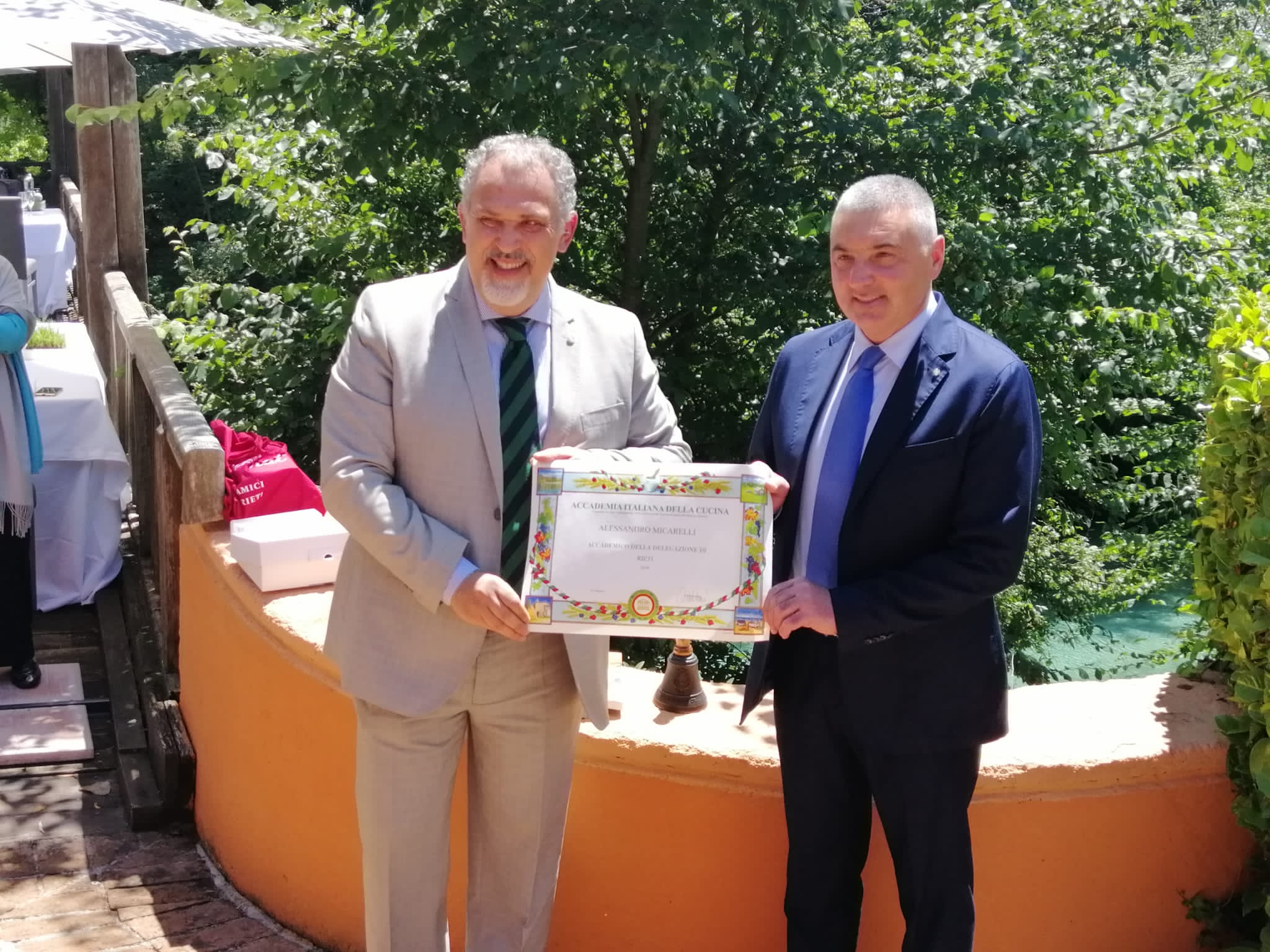 Gli Accademici della Delegazione di Rieti si sono ritrovati presso il ristorante “La Trota” di Rivodutri (RI) dei fratelli Maurizio e Sandro Serva, in occasione della riunione conviviale “della ripresa”. Dopo avere effettuato la riuscita “Convivale delocalizzata”, alla quale gli Accademici si erano collegati dalle proprie abitazioni, per questo primo incontro, dopo mesi di distanziamento, è stato individuato un ristorante che garantisse alta qualità unita alla sicurezza per ripartire degnamente degustando cibi e apprezzando la vera convivialità, elemento distintivo dell’Accademia. La magnifica giornata di sole ha consentito di consumare il pasto ai bordi del torrente Santa Susanna (foto 1), dalle acque limpide e cristalline, permettendo di degustare le ottime pietanze proposte ammirando il panorama della Valle Santa reatina e della flora e fauna del fiume. Nel corso della giornata si è celebrato l’ingresso nella Delegazione dell’Accademico Alessandro Micarelli, rimasto sospeso a causa della chiusura (in foto 1 a destra, con il Delegato Francesco Maria Palomba).