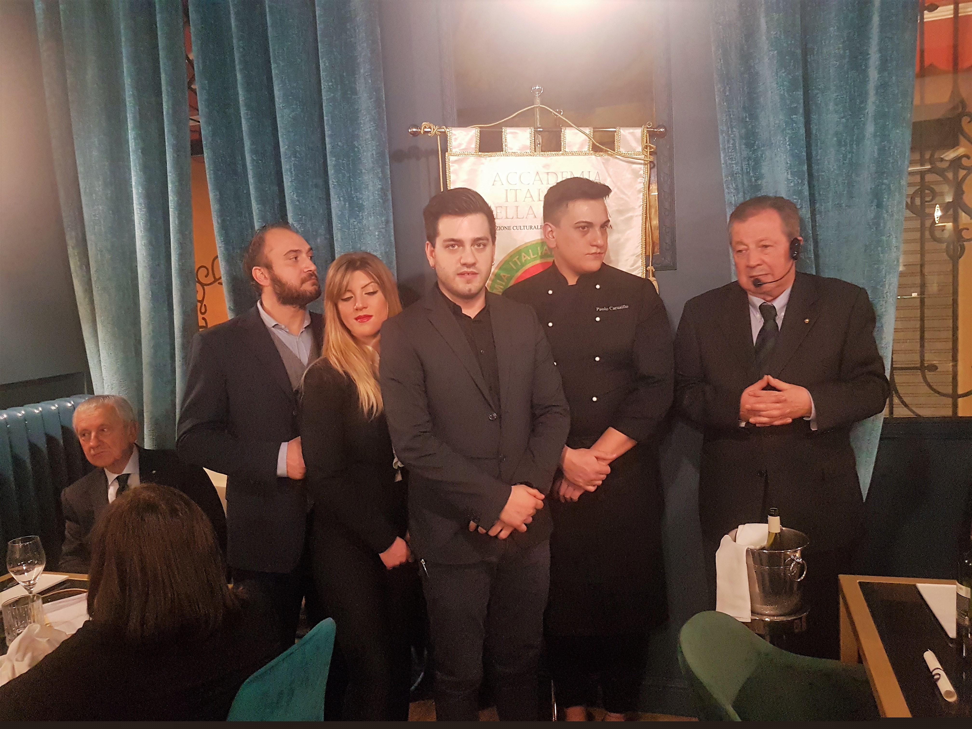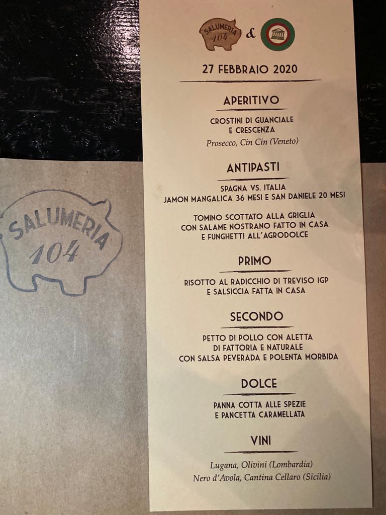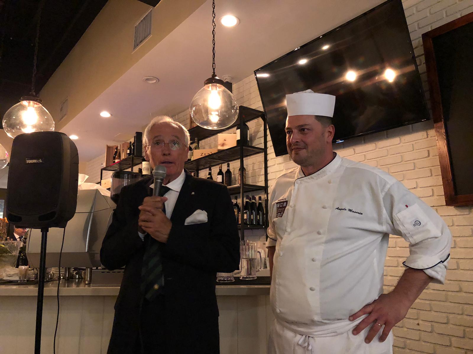 La riunione conviviale di febbraio della Delegazione di Miami si è tenuta presso il ristorante "Salumeria 104" a Coral Gables. La serata ha avuto come tema "Salumi..che passione!" che chef e comproprietario Angelo Masarin, di origine veneta, ha saputo interpretare con grande professionalità. I salumi sono prodotti in loco dallo stesso chef con materia prima sceltissima di origine italiana. Il risotto è stato molto apprezzato dagli Accademici e ospiti per armonia di sapori. Foto 1. Il Delegato Antonio Pianta con lo chef Masarin. Foto 2-4. Menu e piatti.