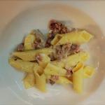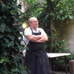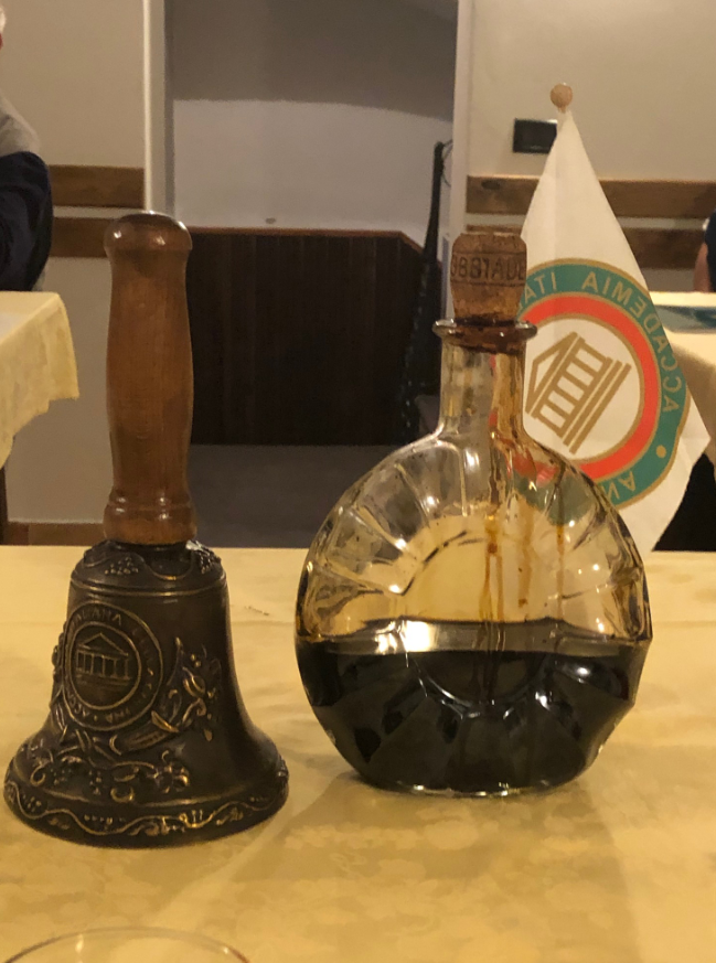 Per la prima uscita dopo la riapertura, è stata scelta l’Osteria del Garò, ai piedi del Castello di Levizzano, che dal 1996 Enzo e Manuela Ricchi gestiscono, ora con il figlio Enzo. L’esperienza agricola e di macelleria ha portato i fondatori a scegliere nel ricettario della tradizione proponendo cibi accattivanti di fresca preparazione, fra cui la salsiccia preparata a mano secondo una vecchia ricetta di famiglia. Essendo vicina la Festa di San Giovanni si è scelto un menu con uso della noce, simbolo tradizionale nei riti modenesi. Tra i gustosi tortellacci speck e noci (foto 3) e la grigliata di carne e verdura, sono stati narrati ricordi d’infanzia, vecchi riti, usi in cui la rugiada ha valore salvifico esaltando il bene e difendendo dal male. Per finire, un nocino cremoso (foto 4), curato da Enrico, corredato di premio dalla Consorteria in gara a Spilamberto (foto 2).
