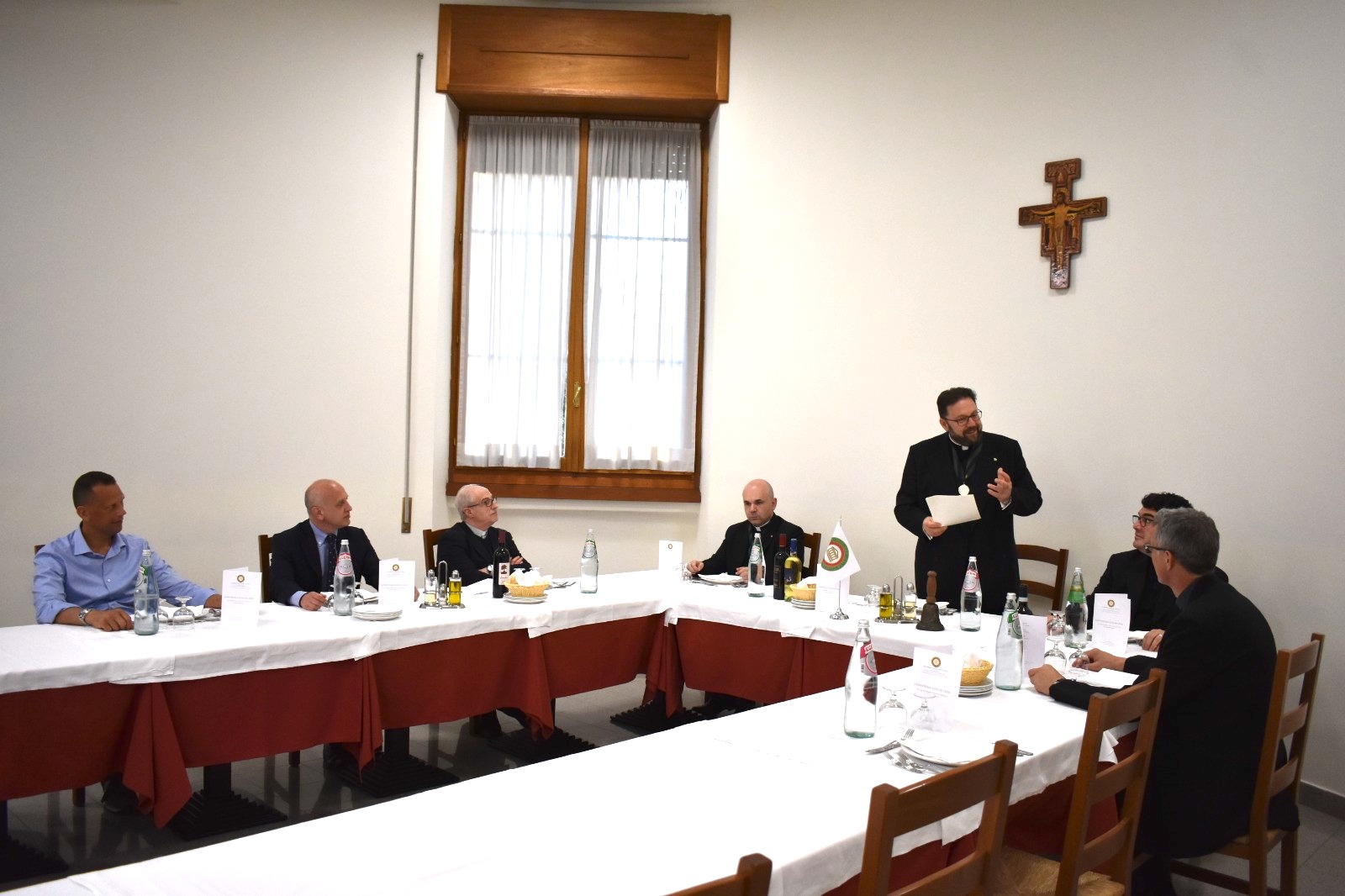 Si è tenuta il 5 giugno la riunione conviviale organizzata dalla Legazione per lo Stato della Città del Vaticano presso il ristorante della Casa Bonus Pastor. La presentazione a cura del Legato, Monsignor Giovanni Lo Giudice (foto 1), e gli interventi di Monsignor Michele Fiorentino (foto 2) e del rev.do Padre Guido Colombo (foto 3), ssp, hanno avuto come oggetto di riflessione le problematiche sorte in seno alla ristorazione, a causa del Covid19, e le applicazioni delle norme igieniche anti covid negli ambienti di refezione del territorio dello Stato della Città del Vaticano e nei refettori religiosi.