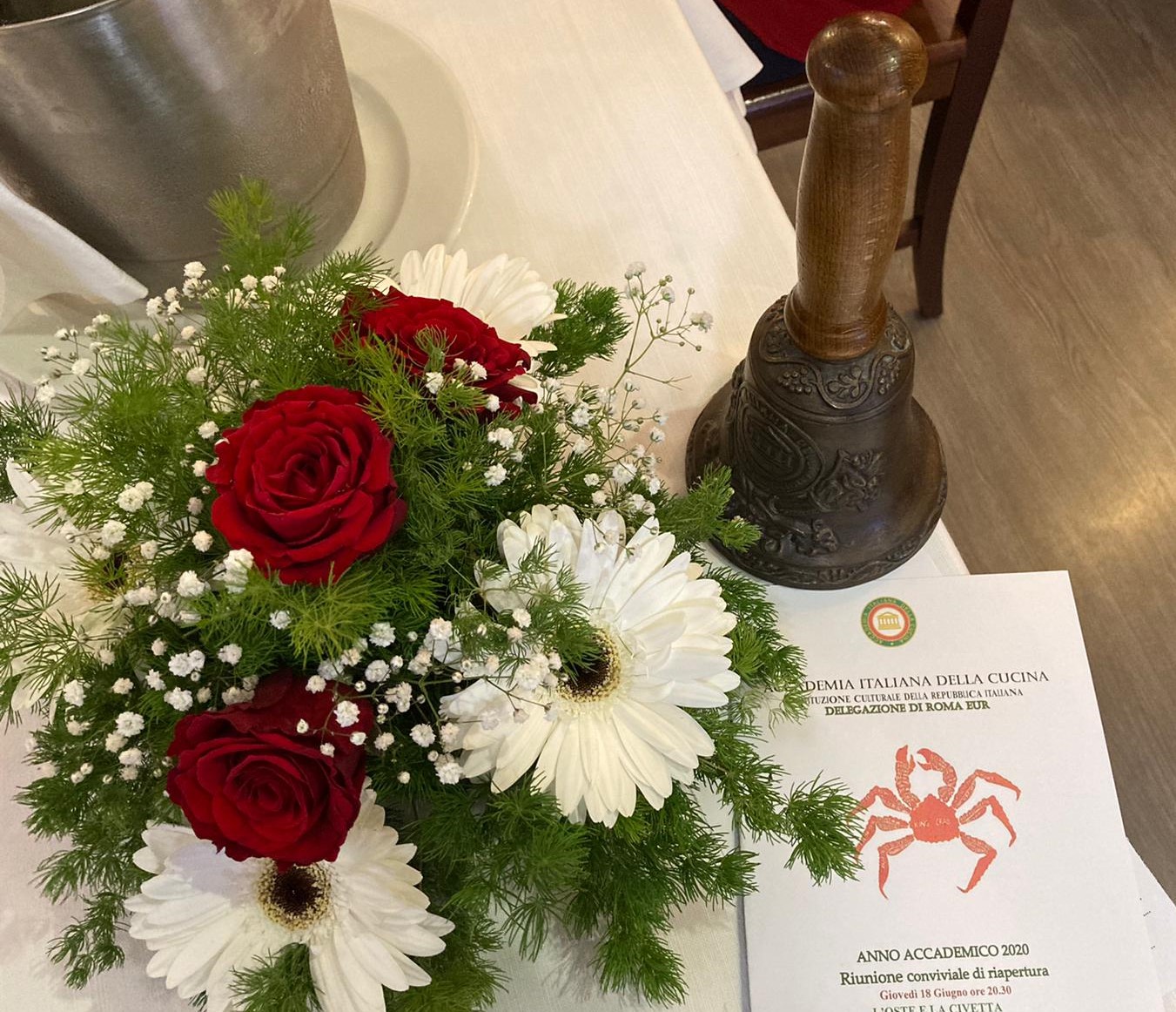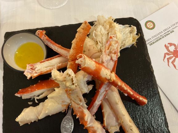 La Delegazione ha ripreso le proprie attività dopo la sospensione dei mesi di marzo, aprile e la riunione conviviale delocalizzata di maggio. L'incontro è stato molto particolare e, in quanto tale, rivolto a pochi estimatori ai quali era già stato preannunciato all'inizio dell'anno. Si è ripreso, così, il cammino dal punto esatto in cui si era interrotto a gennaio, nell'ultima riunione svolta, una delle più apprezzate di sempre, secondo i giudizi unanimi espressi dai convenuti. Come promesso, dunque, l'appuntamento è stato al ristorante "L'Oste e la Civetta", con il favoloso king crab del Mare di Bering (foto 3), cotto a vapore e servito, così come vuole la tradizione dei Paesi che si affacciano sui mari del Nord, con il burro chiarificato o con una salsa a base di burro e aneto, che ha costituito il piatto principale della serata. Un'autentica sorpresa per molti: le carni dolcissime e tenerissime celate, come un tesoro prezioso, all'interno delle chele e delle zampe di questo granchio gigante che raggiunge i 12 kg di peso. Non meno gradite le proposte dell'antipasto confezionate dallo chef Marco Corbò su indicazione del Simposiarca Luca Felicissimo. Interessante la selezione di gelati di frutta fresca, tutti dal gusto raro e originale, serviti come dessert.