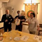 La Delegazione di Pescara si è ritrovata al “Clubino” del Sea River per la riunione conviviale regionale delle Delegazioni abruzzesi organizzata dal Coordinamento territoriale, sul tema “lo zafferano d’Abruzzo”. Belle e di grande impatto le foto relative alla coltivazione e lavorazione di “oro rosso” proiettate e descritte dal fotografo Luciano D’Angelo. Il menu tematico scelto dal Simposiarca Licio Pardi è stato realizzato con la collaborazione di Serena e Livia Di Battista, produttrici di zafferano e titolari del ristorante agriturismo “Sapori di Campagna” a Ofena (AQ). Nel corso della partecipata riunione è stato anche celebrato il venticinquennale di appartenenza degli Accademici Vincenzo Del Colle e Paolo Toppetti. Foto 1. Il Delegato premia Vincenzo Del Colle. Foto 2. Diploma del venticinquennale a Paolo Toppetti. Foto 3. Il tavolo del Delegato con il Simposiarca Licio Pardi (quarto da sinistra). Foto 4. La squisita crostata di frolla al cacao, crema di zafferano e frutti di bosco della cuoca Livia Di Battista.