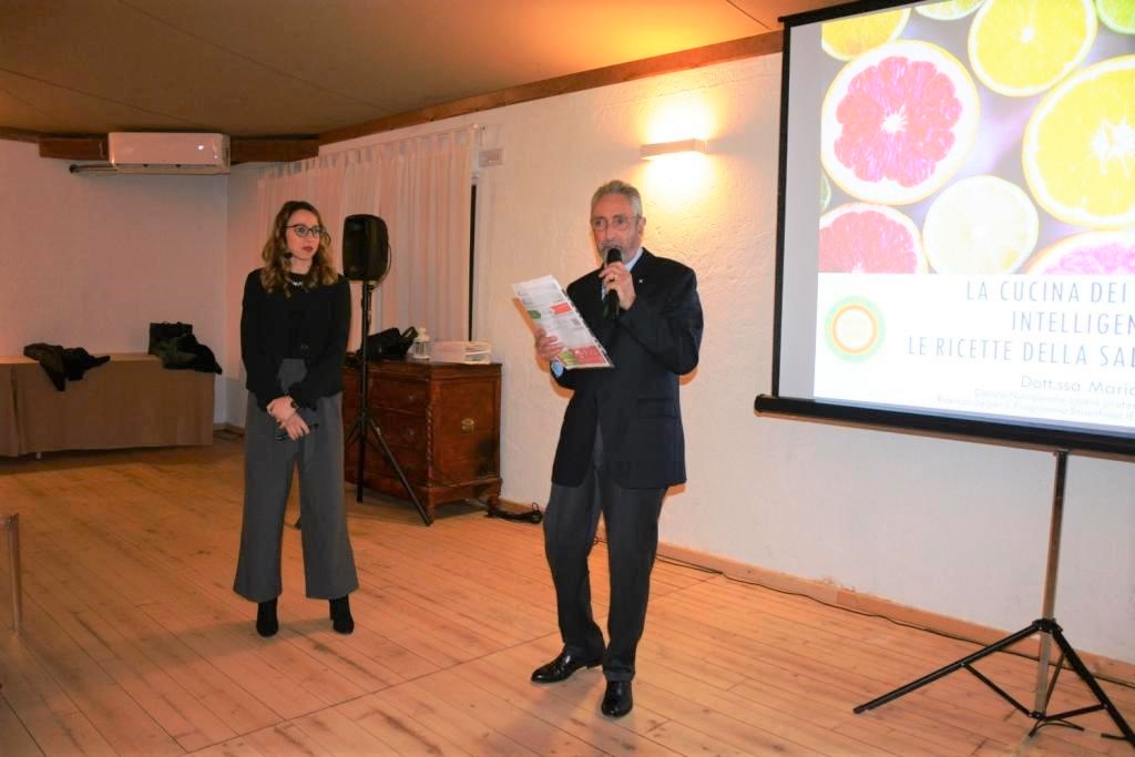 “La cucina dei cibi intelligenti e le ricette della salute” è stato il tema della riunione conviviale svolta dalla Delegazione di Pescara al ristorante “La Corte” di Spoltore. Relatrice Maria Tieri, dietista nutrizionista, ricercatrice nell’ambito del programma di ricerca di scienza della nutrizione “Smart Food” presso l’Istituto Europeo di Oncologia di Milano. Foto 1. La relatrice Maria Tieri con il Delegato Giuseppe Fioritoni. Foto 2. La sala della conferenza. Foto 3. Il Simposiarca Guido Cerolini Forlini illustra il menu insieme alla dottoressa Maria Tieri. Foto 4. La sala della riunione conviviale.