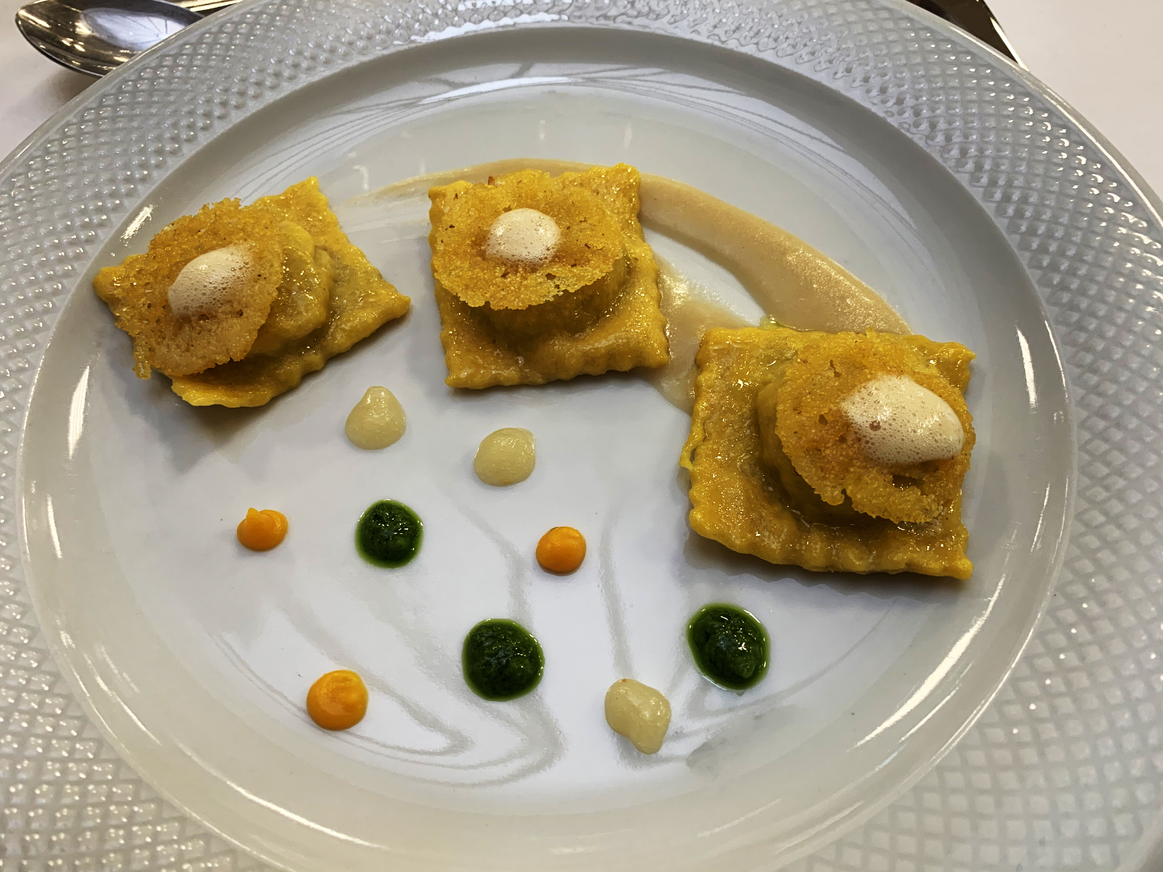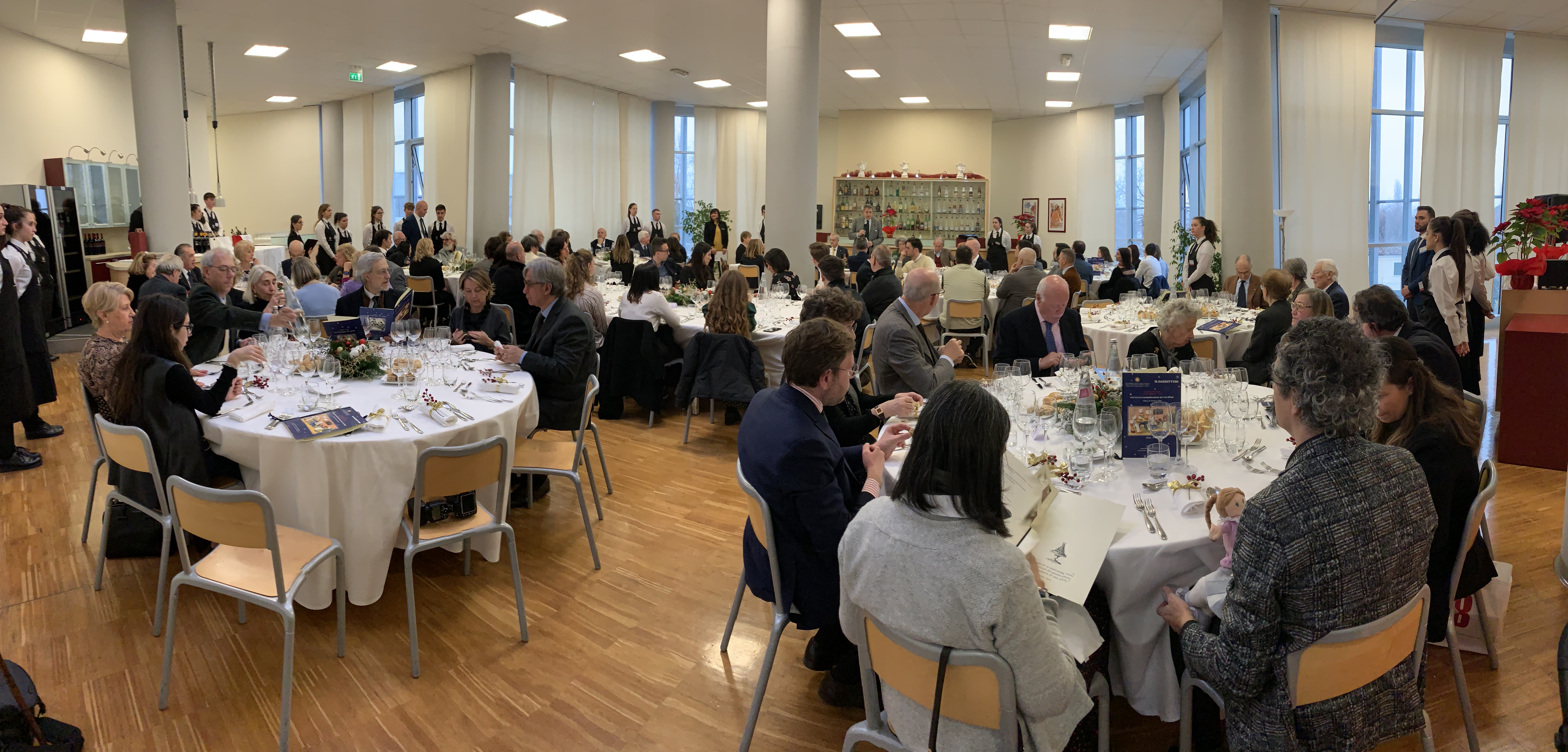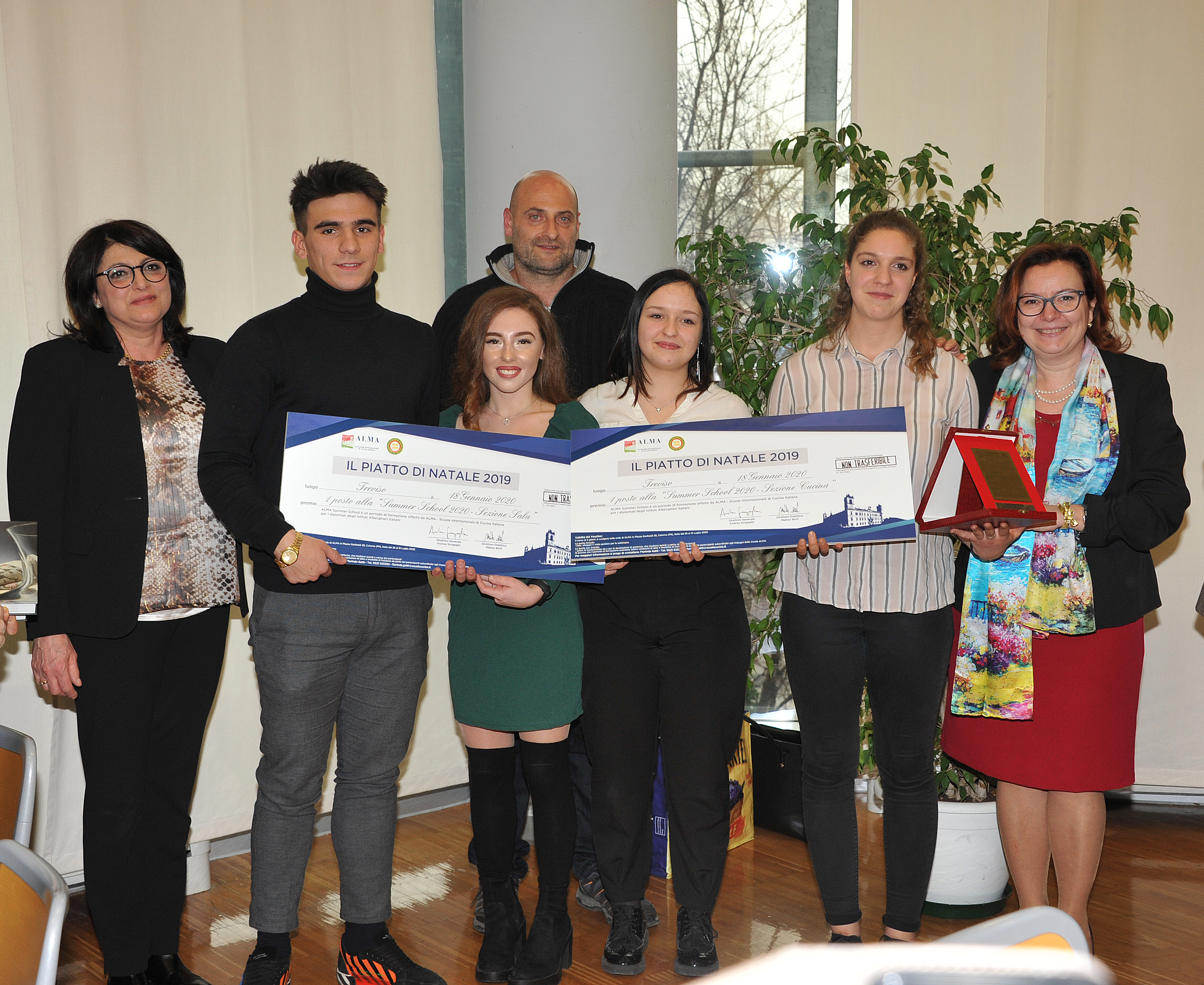 23esima edizione de "Il Piatto del Natale", storico concorso riservato agli isitituti albergheri organizzato dal Gazzettino, dalla Delegazione di Venezia Mestre quest’anno insieme alla Delegazione di Treviso. Si è tenuta il 18 gennaio nelle sale dell’Istituto Alberghiero "Alberini" a Lancenigo di Villorba (Tv) la conviviale di gala in cui sono stati premiati gli istituti finalisti che hanno convinto la giuria tecnica, composta da importanti chef e ristoratori e da Accademici, con piatti originali, saporiti, serviti e accompagnati con cura. Il Beltrame di Vittorio Veneto (Tv) ha vinto l’edizione 2019 con “Il piatto di Natale nel viaggio del gusto”: tortelli di pasta fresca ripieni di ossada (parti gelatinose delle cartilagini, polpa e ritagli di carne), in foto 1. Foto 2. La sala dell'evento conviviale. Foto 3. Il tavolo con il Delegato di Venezia Mestre Franco Zorzet, la Delegata di Treviso Teresa Perissinotto, Roberto Robazza DCST Veneto. Foto 4. I vincitori.
