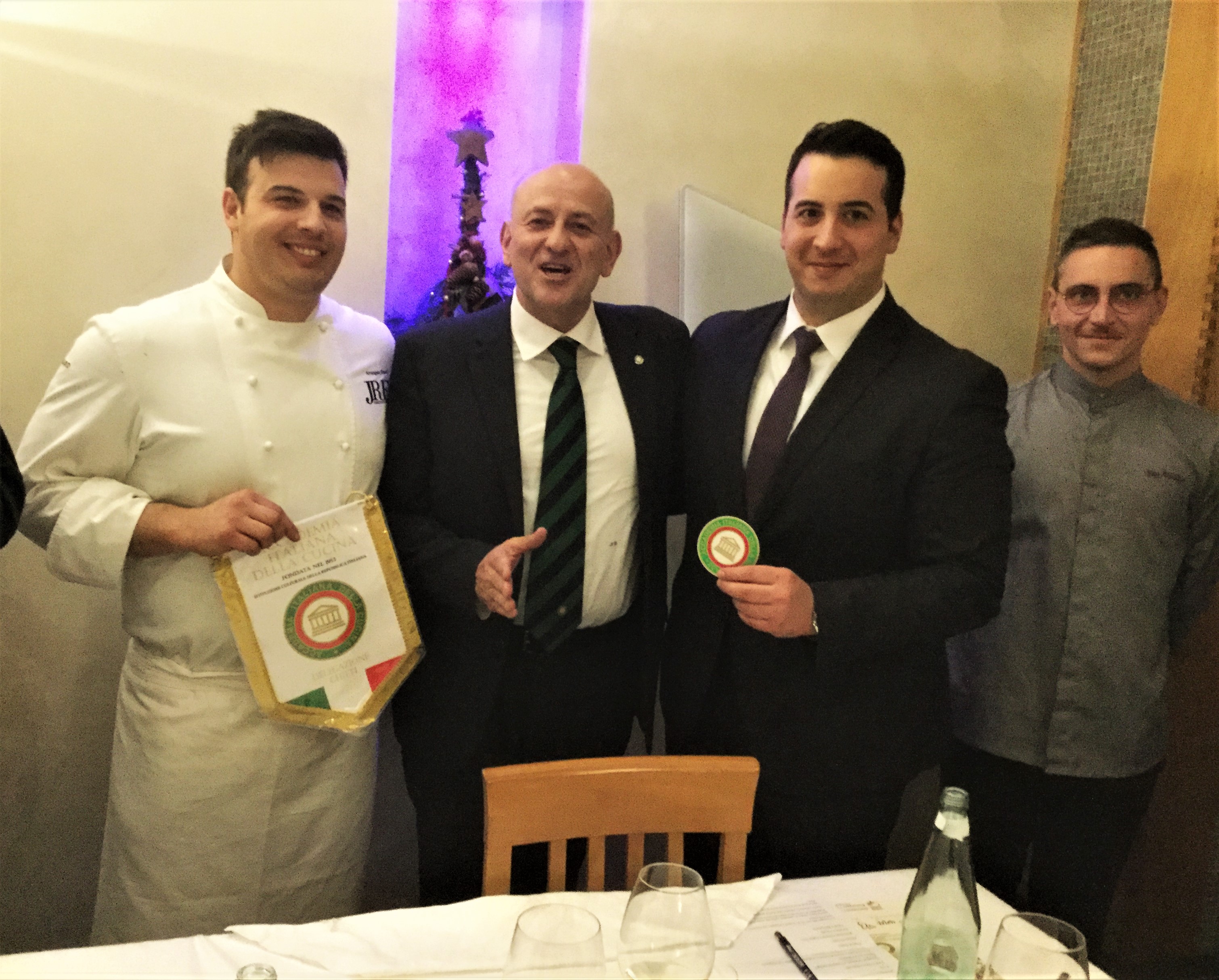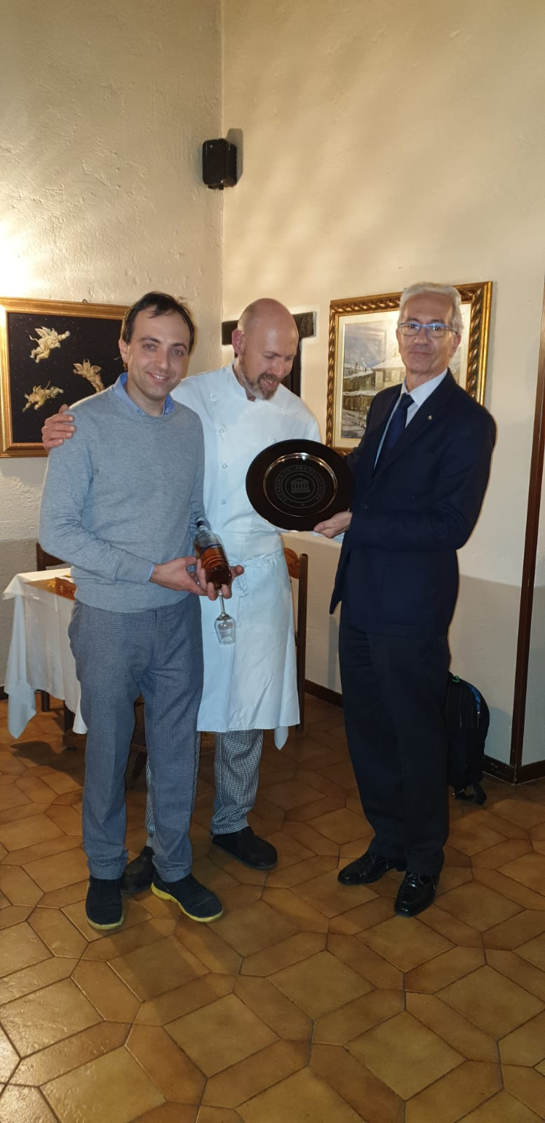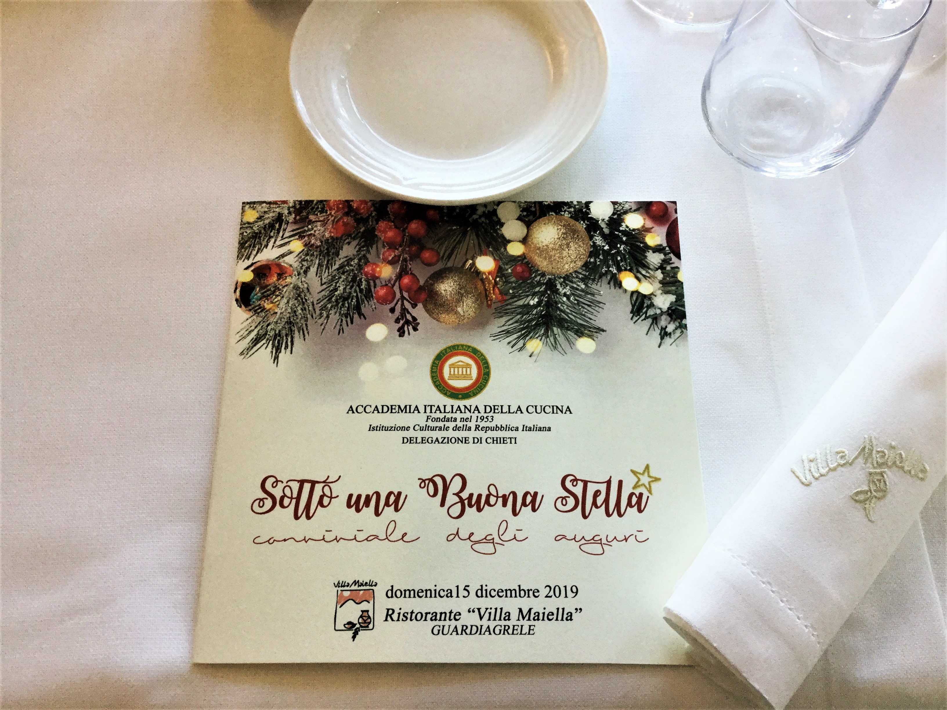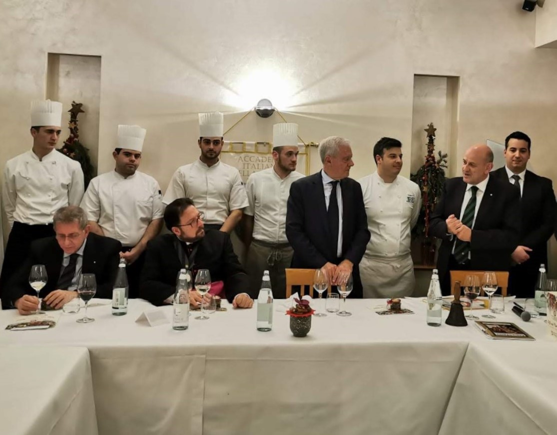 La Delegazione di Chieti si è riunita per la consueta conviviale prenatalizia e quest'anno è stato scelto il ristorante "Villa Maiella" di Guardiagrele gestito egregiamente dalla famiglia Tinari, che vanta in sala Pascal Tinari, nominato miglior sommelier d'Italia per il 2019. Un piccolo capolavoro gastronomico, il menu predisposto insieme alla Consulta, che ha contemperato le esigenze della tradizione festiva abruzzese e le ultime novità dell'estro di Angela, Peppino e Arcangelo Tinari. Ospiti della Delegazione sono stati Giovanni Lo Giudice, Legato della Legazione per lo Stato Città del Vaticano e il signor Prefetto Giacomo Barbato.