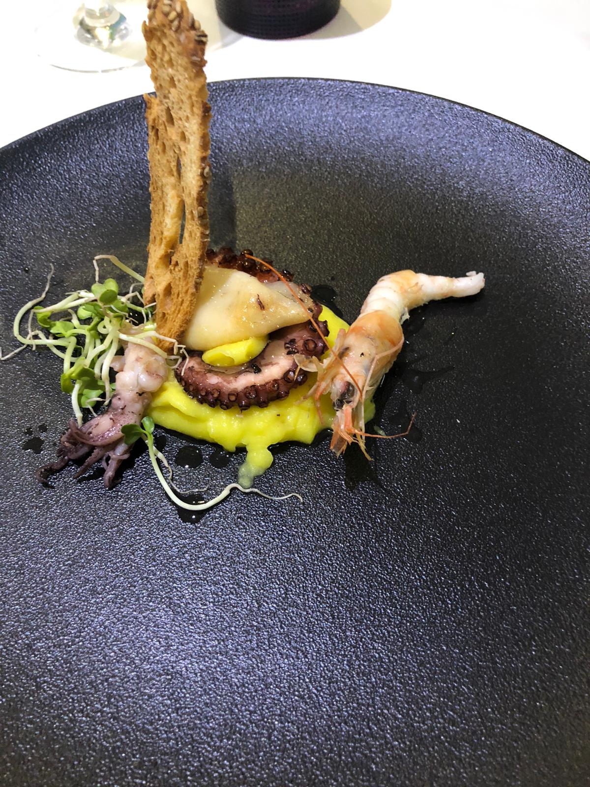 La Delegazione di Agrigento si è ritrovata per la riunione conviviale degli auguri al ristorante "Kalos" di Agrigento. Foto 1 e 2. Accademici e gentili ospiti intervenuti. Foto 3. Nella tradizione di Santa Lucia arancina rivisitata con triglia e finocchietto selvatico. Foto 4. Insalata di mare scomposta.