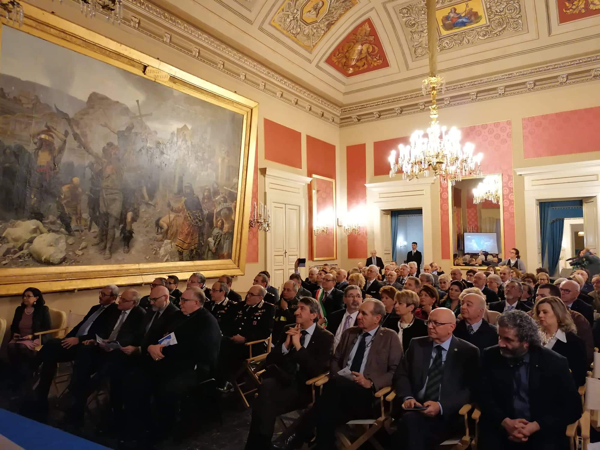 La Delegazione di Campobasso, guidata da Ernesto Di Pietro, in occasione del convegno del 5 ottobre “I matrimoni nella Campobasso dell’800: usi, costumi, sapori e menu” in una gremita sala consiliare del Comune di Campobasso, alla presenza di numerose autorità locali e dei Delegati di Termoli, Isernia e Benevento, nonché del Delegato onorario, del Coordinatore territoriale del Molise e del Direttore del Centro Studi, ha consegnato alla giovane Laura Di Maria, in rappresentanza della ditta “Confetti e ciccolato di Maria" il prestigioso premio Massimo Alberini 2019, per i quaranta anni di attività nella produzione di dolci di grande qualità. In occasione, invece, della consueta riunione conviviale per gli auguri di Natale tenutasi il 15 dicembre al ristorante “Il Potestà” di Campobasso, la Delegazione ha consegnato a Giovanni Serricchio, in rappresentanza della pasticceria ”Quemado” di Trivento(CB), il premio "Dino Villani" per la produzione artigianale dei “c’ppllat”. Foto 1. Delegato e Laura Di Maria. Foto 2. Sala Consiliare gremita. Foto 3. Delegato e Giovanni Serricchio.