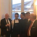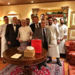 I locali del ristorante "San Domenico" finemente addobbati hanno accolto gli Accademici imolesi per il tradizionale scambio degli auguri natalizi. I piatti presentati da Valentino Mercattilii e da Massimiliano Mascia hanno pienamente soddisfatto le alte aspettative degli Accademici imolesi con il magnifico suggello finale di un raffinato dolce frutto (foto 4). Foto 1. Il Delegato Antonio Gaddoni illustra il menu. Foto 2. La sala del camino. Foto 3. Plauso finale alla brigata di cucina e sala col Vice Presidente Severino Sani e il Delegato Gaddoni.