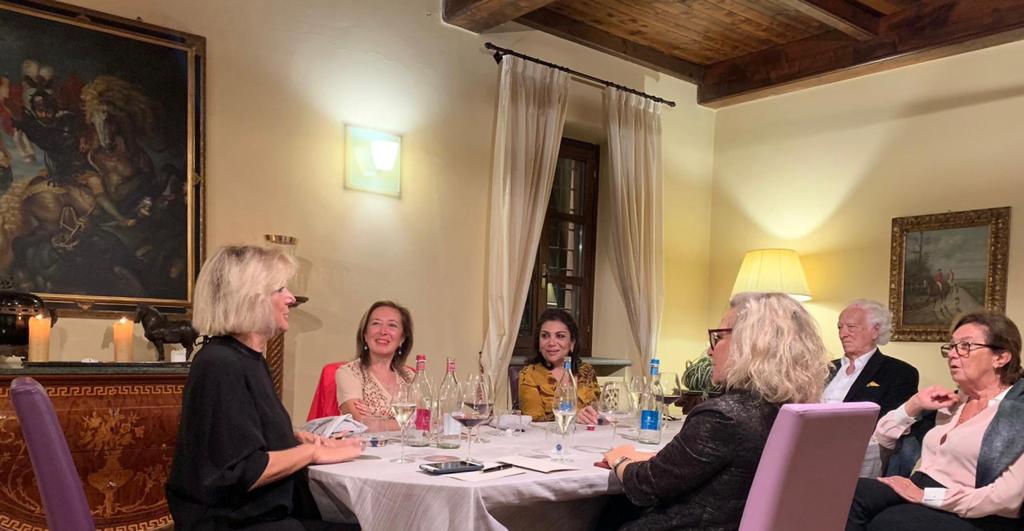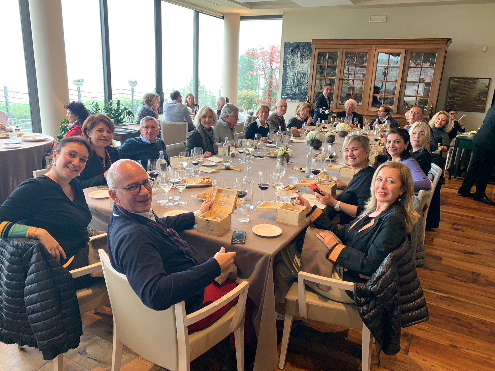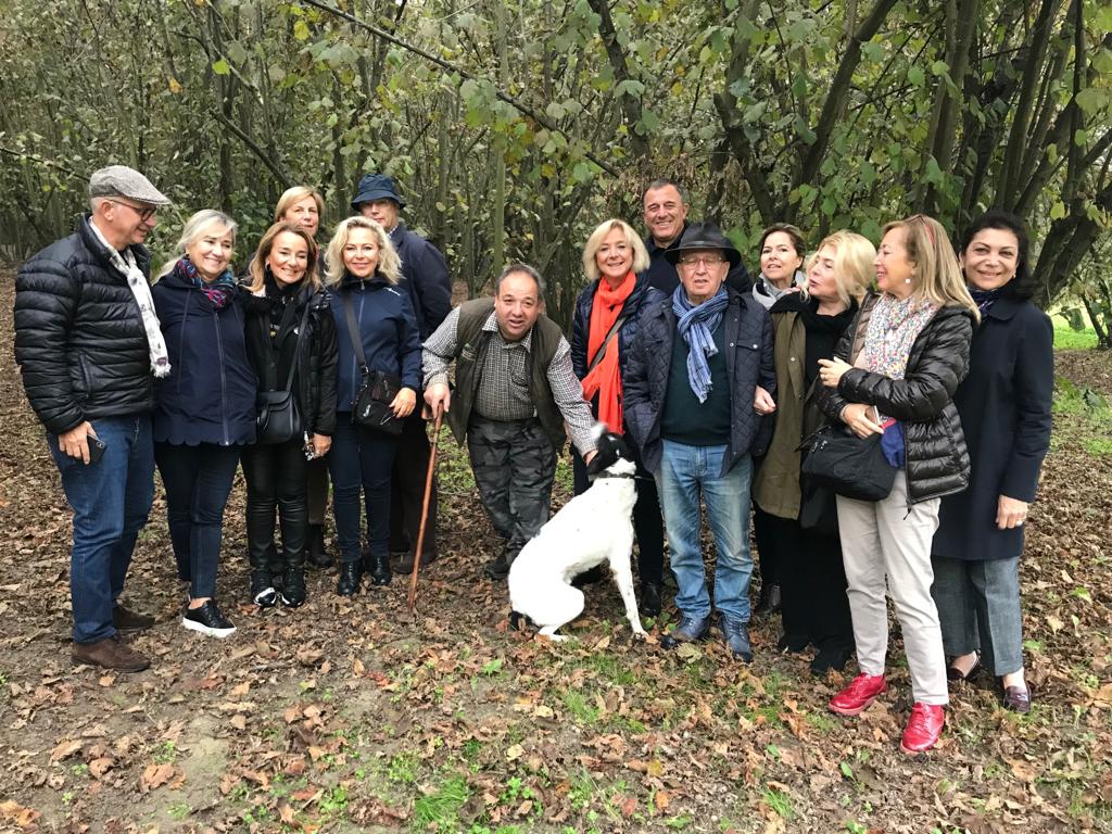 La Delegazione di Istanbul si è recata in visita ad Alba dal 18 al 20 ottobre per una scoperta del territorio e della gastronomia locale. Tra le attività, la visita e la cena di gala presso Palazzo Re Rebaudengo a Guarene d’Alba con tour privato del Palazzo rinnovato di recente e che ospita mostre della collezione d’arte privata della famiglia. Per l’occasione lo chef Alessandro Mecca del ristorante Spazio7 di Torino ha portato la sua brigata a Palazzo Re Rebaudengo per servire agli ospiti provenienti da Istanbul un menu d’eccezione. Sabato 19 ottobre i partecipanti hanno preso parte ad una caccia al tartufo (foto 1) seguita da una visita al Castello di Moransengo, con una visita della dimora, della collezione privata di arte contemporanea e della chiesetta di San Grato annessa al castello. L’intera esperienza si è conclusa con un menu regionale tradizionale preparato dallo chef del castello. Il gruppo si è diretto poi alla vineria Antinori di Bussia dove è stato guidato tra la cantina e i vigneti cui è seguita una degustazione dei vini (foto 2). Alla sera i partecipanti hanno cenato presso il "ristorante 21.9" dello chef Flavio Costa (foto 3). Domenica 20 ottobre, dopo un tour guidato della città di Alba e un giro al mercato del tartufo, il gruppo ha pranzato al ristorante "La Ciau del Tornavento" con un menu preparato per l’occasione dallo chef Maurilio Garola (foto 4).