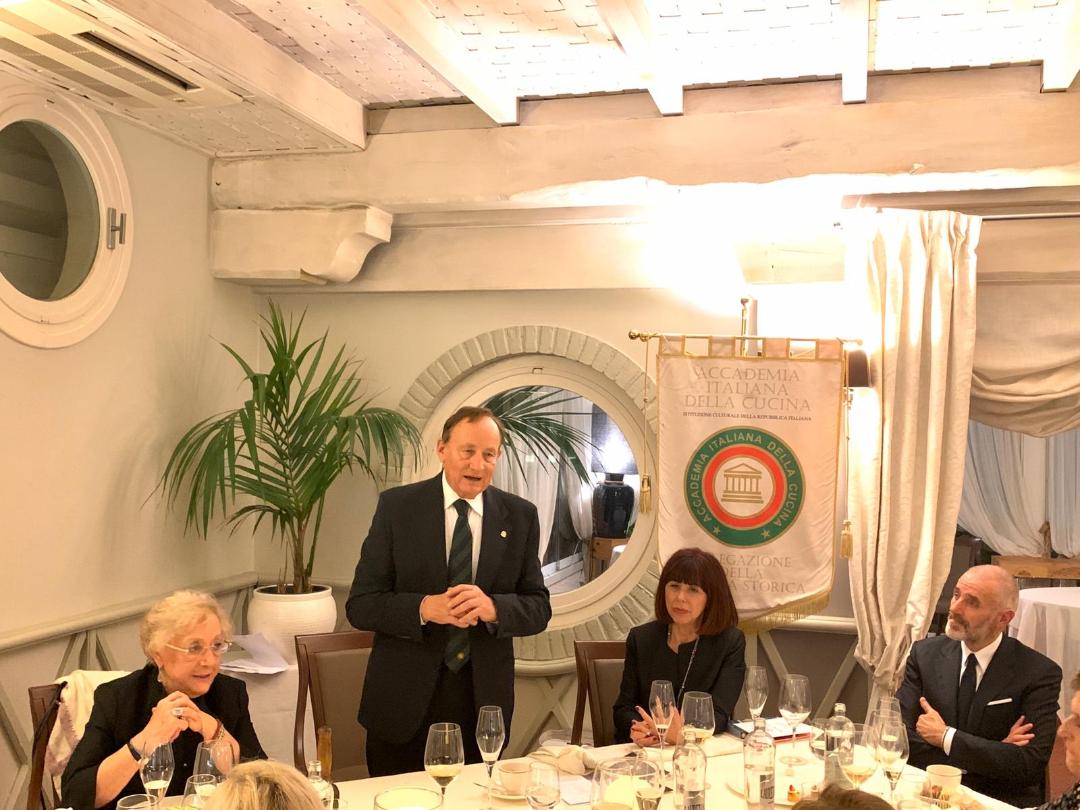 La Delegazione di Budapest ha organizzato la cena ecumenica 2019 sul tema "La pasta fresca, ripiena e gli gnocchi nella cucina della tradizione regionale" presso il Ristorante Fausto’s con la numerosa affluenza di Accademici e ospiti. Il menu ideato dagli Chef Fausto Di Vora e Giorgio Cavicchiolo ha riscosso un grande successo. Impeccabile anche il servizio di sala coordinato dal Maitre Gergely Maul. La relazione è stata tenuta dal Delegato Alberto Tibaldi (in foto 1, in piedi).