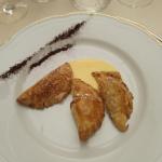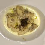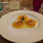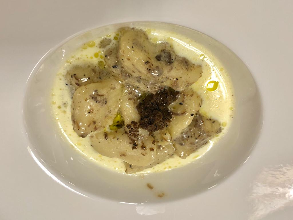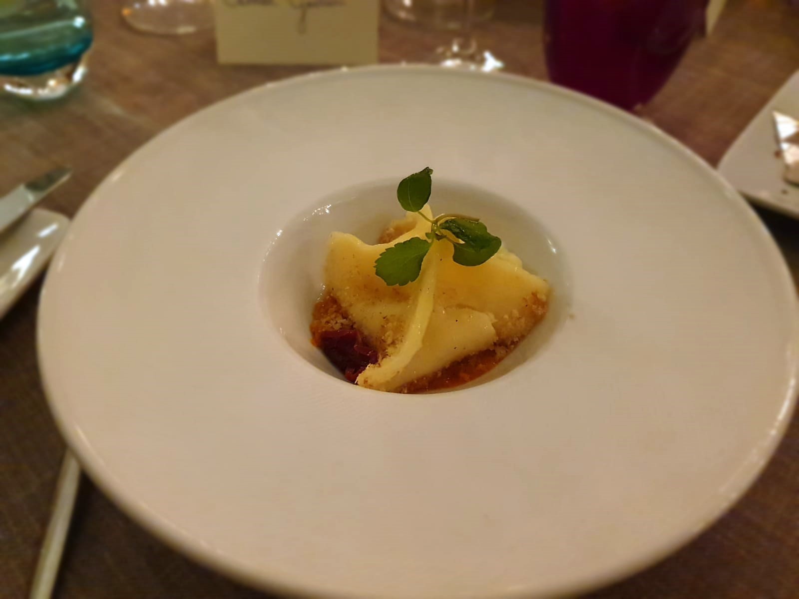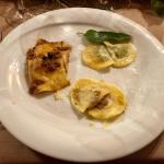 La Delegazione di Biella ha organizzato la cena ecumenica 2019 sul tema "La pasta fresca, ripiena e gli gnocchi nella cucina della tradizione regionale" al ristorante Croce Bianca di Oropa (Biella). Simposiarca della serata, Giorgio Lozia, membro del Centro Studi territoriale del Piemonte (nella foto 2). Foto 1. La Delegata Maria Luisa Bertotto, ospiti e Accademici a tavola. Foto 3.La Delegata e lo chef Ivan Ramella. Foto 4. Dal menu: ravioli di sfoglia ripieni di fichi.