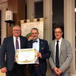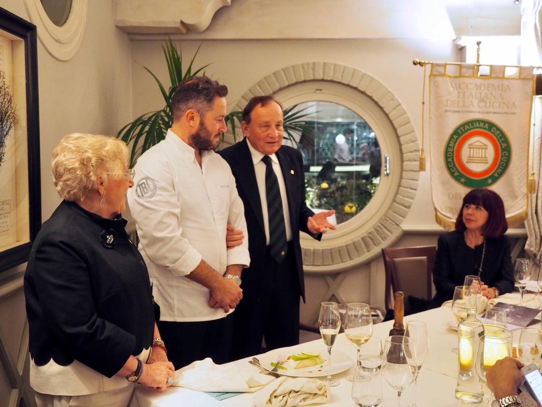 È avvenuta presso il ristorante "Bistrot" di Forte dei Marmi la consegna, da parte del Presidente Paolo Petroni, del Premio "Giovanni Nuvoletti" al Signor Piero Vaiani - titolare dei ristoranti Bistrot, Osteria del Mare, Fratellinis e Pesce Baracca - per il suo impegno quarantennale nella ristorazione versiliese e per la sua costante valorizzazione dei prodotti del territorio. Sono intervenuti, oltre al Presidente Paolo Petroni, il Vice Prefetto Vicario di Lucca Giuseppina Cassone e il Questore di Lucca Maurizio dalle Mura, unitamente a Delegati e Accademici. Foto 1. Il Presidente con la Delegata della Versilia Storica Anna Ricci, il premiato Piero Vaiani e i figli Davide e Marco. Foto 2. Il Presidente Petroni con le autorità dott.ssa Giuseppina Cassone, dott. Maurizio dalle Mura, il Sindaco di Seravezza Riccardo Tarabella e Davide Vaiani. Foto 3. Saluto del Presidente ai presenti alla serata. Foto 4. Il Presidente si congratula con lo chef Andrea Mattei per i piatti proposti.