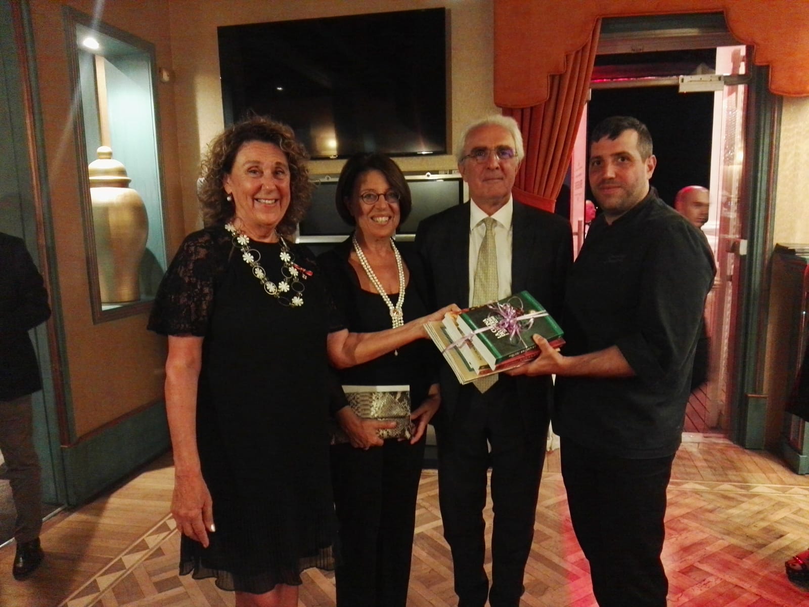 La Delegazione di Malta ha organizzato la cena ecumenica 2019 sul tema "La pasta fresca, ripiena e gli gnocchi nella cucina della tradizione regionale" al ristorante del Casinò Dragonara, dove per eventi speciali si occupa della cucina il qualificatissimo Claudio Schiavone, chef prediletto della Delegazione maltese. foto 1. Discorso introduttivo della Delegata Massimiliana Affanni Tomaselli sul tema della serata. Foto 2. Consegna alla Delegata dell'onorificenza di Cavaliere dell'Ordine della Stella d'Italia. Foto 3. La Delegata consegna le pubblicazioni accademiche allo chef Claudio Schiavone. Al centro sig.ra Federica Modena Sammartino e S.E. Ambasciatore Mario Sammartino. Foto 4. Una piatto dal menu.