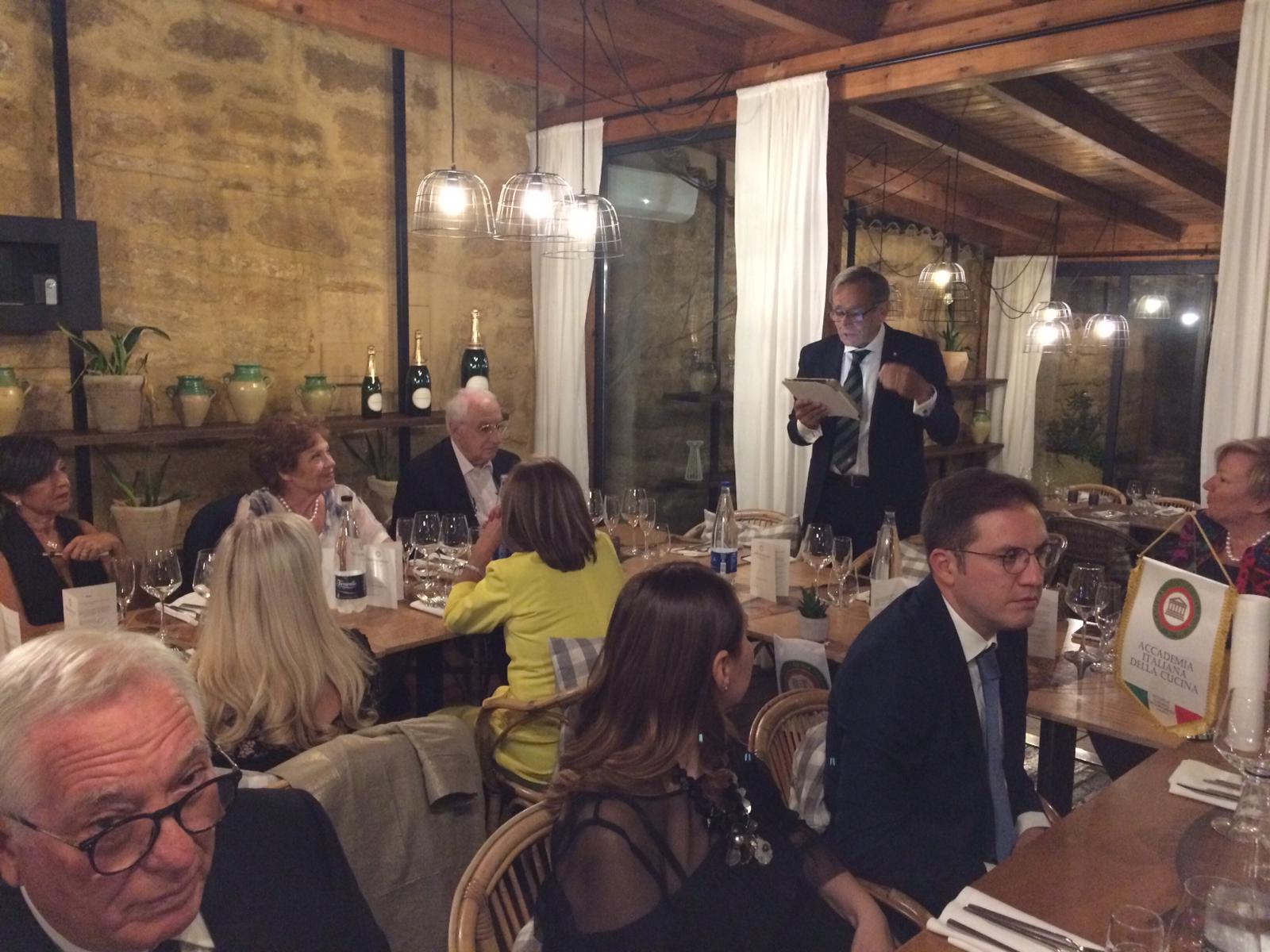 La Delegazione di Agrigento ha organizzato la cena ecumenica 2019 sul tema "La pasta fresca, ripiena e gli gnocchi nella cucina della tradizione regionale" presso il ristorante "Aguglia Persa". Nelle foto, il Delegato Claudio Barba (in piedi), Accademici e ospiti.