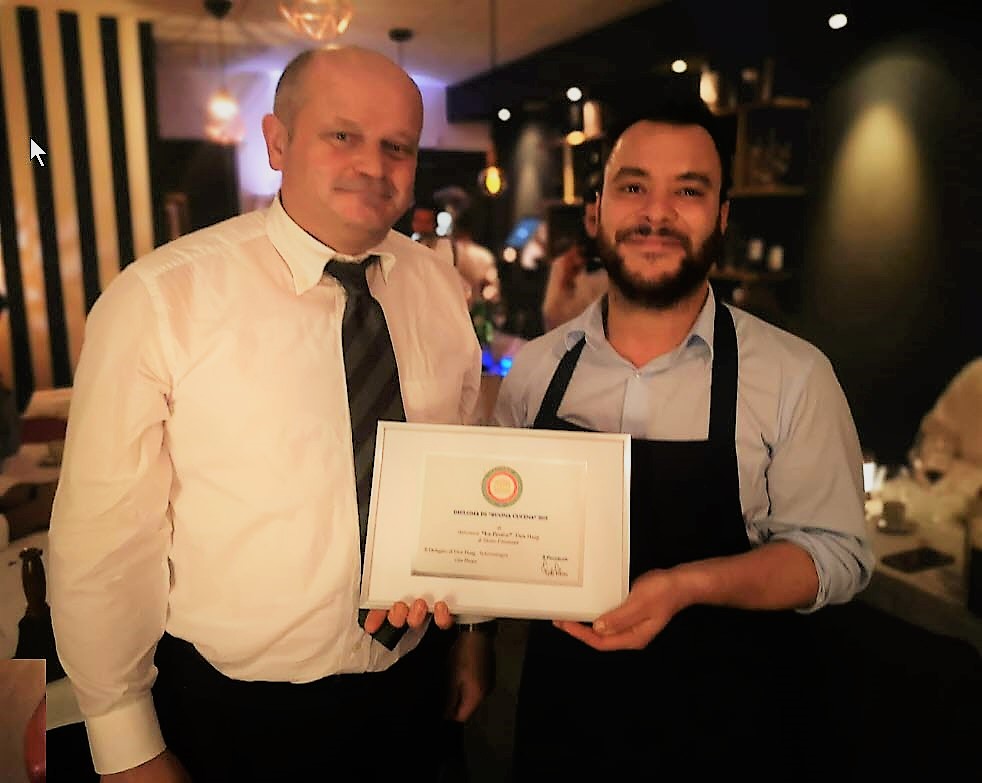 La Delegazione di Den Haag-Scheveningen ha organizzato la cena ecumenica 2019 sul tema "La pasta fresca, ripiena e gli gnocchi nella cucina della tradizione regionale" presso il ristorante "La Fenice". In questa occasione il Delegato Ciro Pernice ha consegnato il Diploma di Buona Cucina 2019 al ristoratore-chef Marco Fioravanti (foto 1-2). Dal menu: ravioli di coniglio con verdure agrodolci (foto 3); cjarsons, tipici ravioli dolci di Gorizia (foto 4).