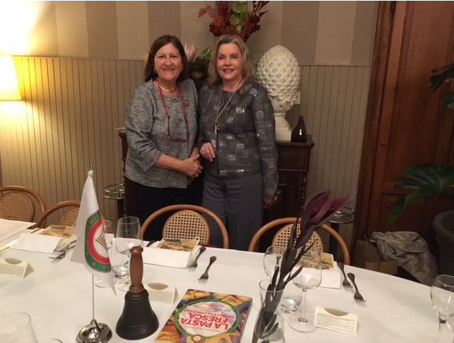 La Delegazione Milano Duomo ha organizzato la cena ecumenica 2019 sul tema "La pasta fresca, ripiena e gli gnocchi nella cucina della tradizione regionale" presso "Antica Osteria la Rampina", con un menu di ricette regionali lombarde presenti nel volume, edito dall’Accademia, e per l’occasione presentato dalla Delegata Maria Luisa Mandelli. Foto 1. Simposiarche della serata con la Delegata, Anna Mattioli e Marisa Zipoli, che hanno contribuito al menu, con alcuni piatti da loro preparati. Foto 2. La Delegata con Fernanda Maranesi, Delegata di Rio de Janeiro e Consultrice nazionale. Foto 3. La Delegata consegna il piatto dell'Accademia allo chef Lino Gagliardi. Foto 4. Il menu della riunione conviviale.