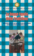 Tenendo fede alla sua missione di valorizzazione della cucina tradizionale, nel 2012 l’Accademia Italiana della Cucina ha realizzato una nuova opera dedicata alla tutela della ristorazione più attenta ai prodotti e alle ricette del territorio. Nella guida “Le buone Tavole della Tradizione” sono stati inseriti solo quei locali che offrono una cucina rispettosa dei valori della tradizione locale (talvolta anche con qualche guizzo di fantasia innovativa), realizzata con ingredienti di prima qualità, possibilmente del luogo e servita con cortesia ad un prezzo equilibrato in rapporto all’ambiente. Questa guida non sostituisce quella completa e sempre aggiornata che è già on line da alcuni anni, bensì si affianca ad essa, con il preciso scopo di valorizzare quei ristoranti che consiglieremmo ad un amico che viene a visitare la nostra città. Per questo motivo si è selezionato un ristrettissimo numero di proposte, sufficienti a soddisfare le necessità dei nostri attenti lettori. Nella guida non sono inserite votazioni o giudizi: tutti i locali sono delle “buone tavole” e tutti meritano una visita. Inoltre, le schede non sono più soltanto informative, ma propongono anche un ampio testo che descrive la storia, le caratteristiche e le peculiarità di ciascun locale recensito e un box contenente la ricetta tipica del locale o un prodotto locale da acquistare o una curiosità da vedere nella zona.