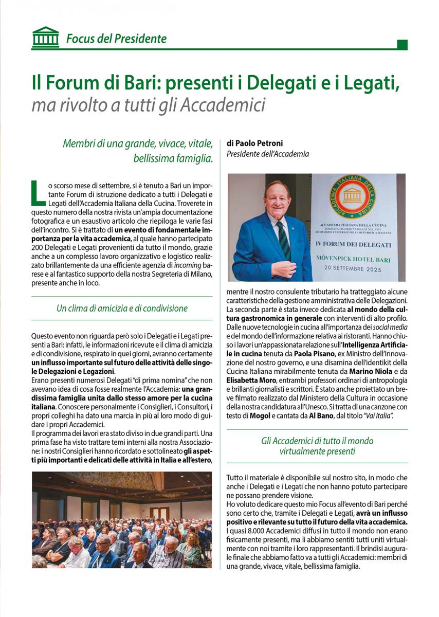 Il Forum di Bari: presenti i Delegati e i Legati, ma rivolto a tutti gli Accademici