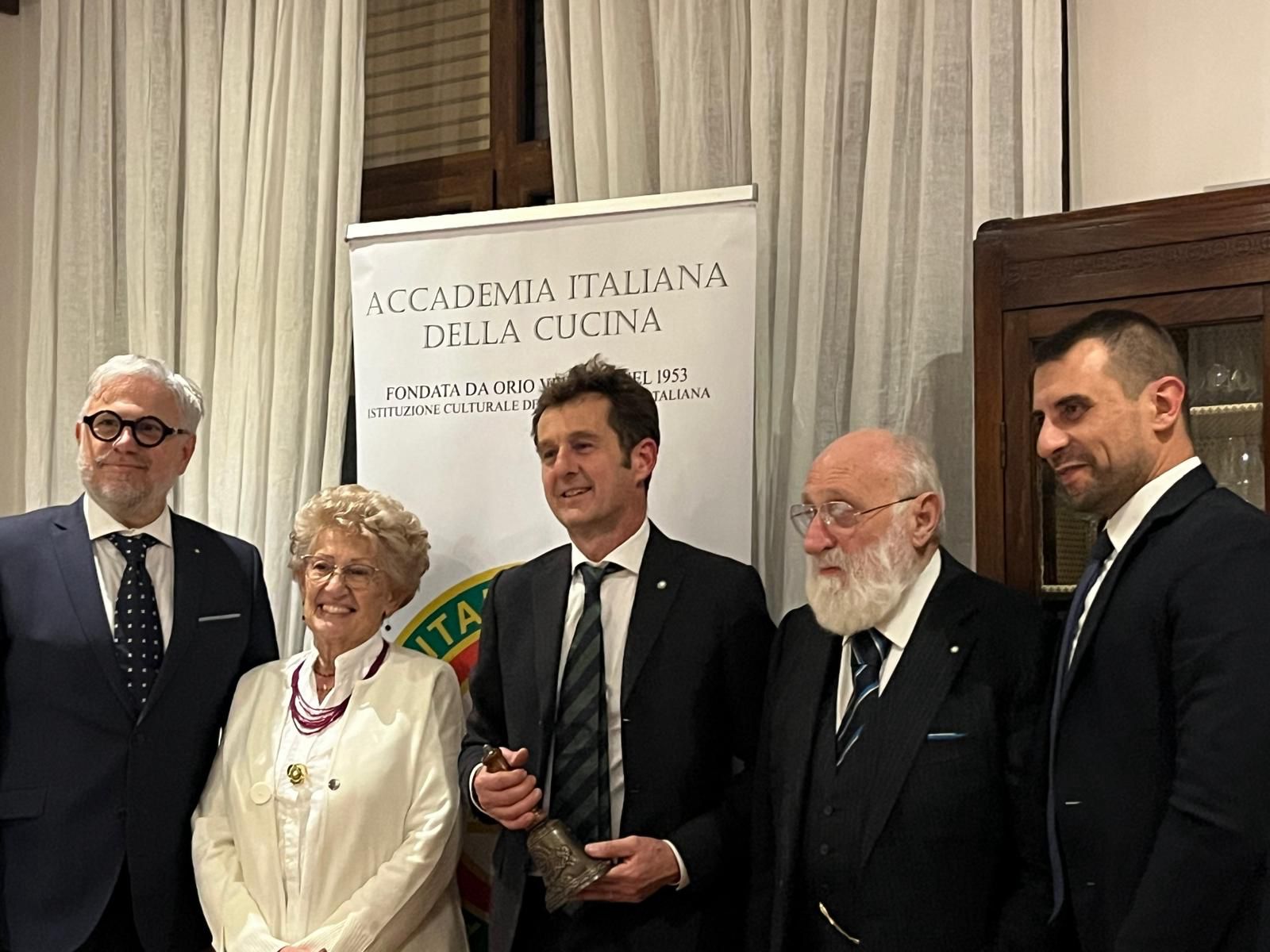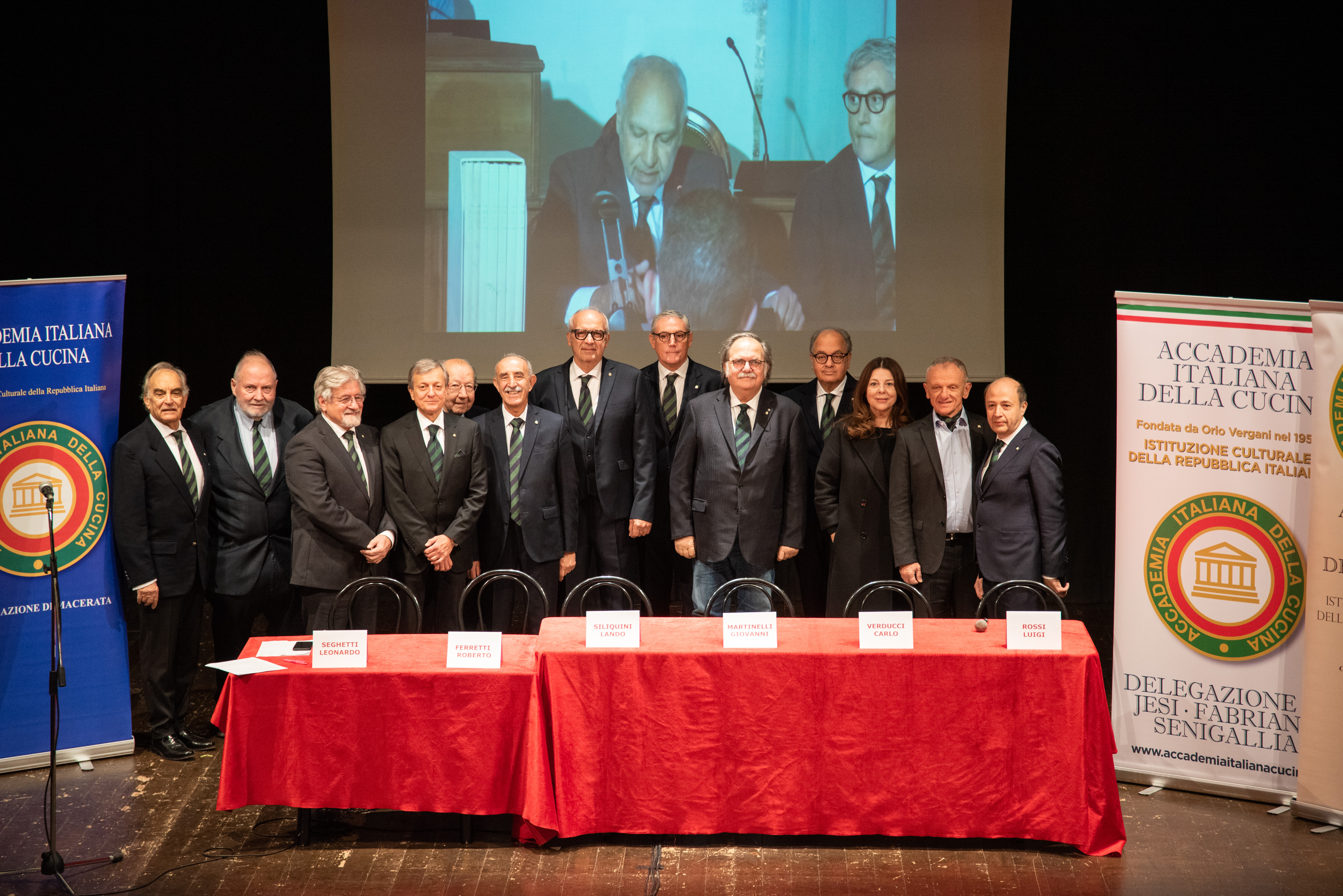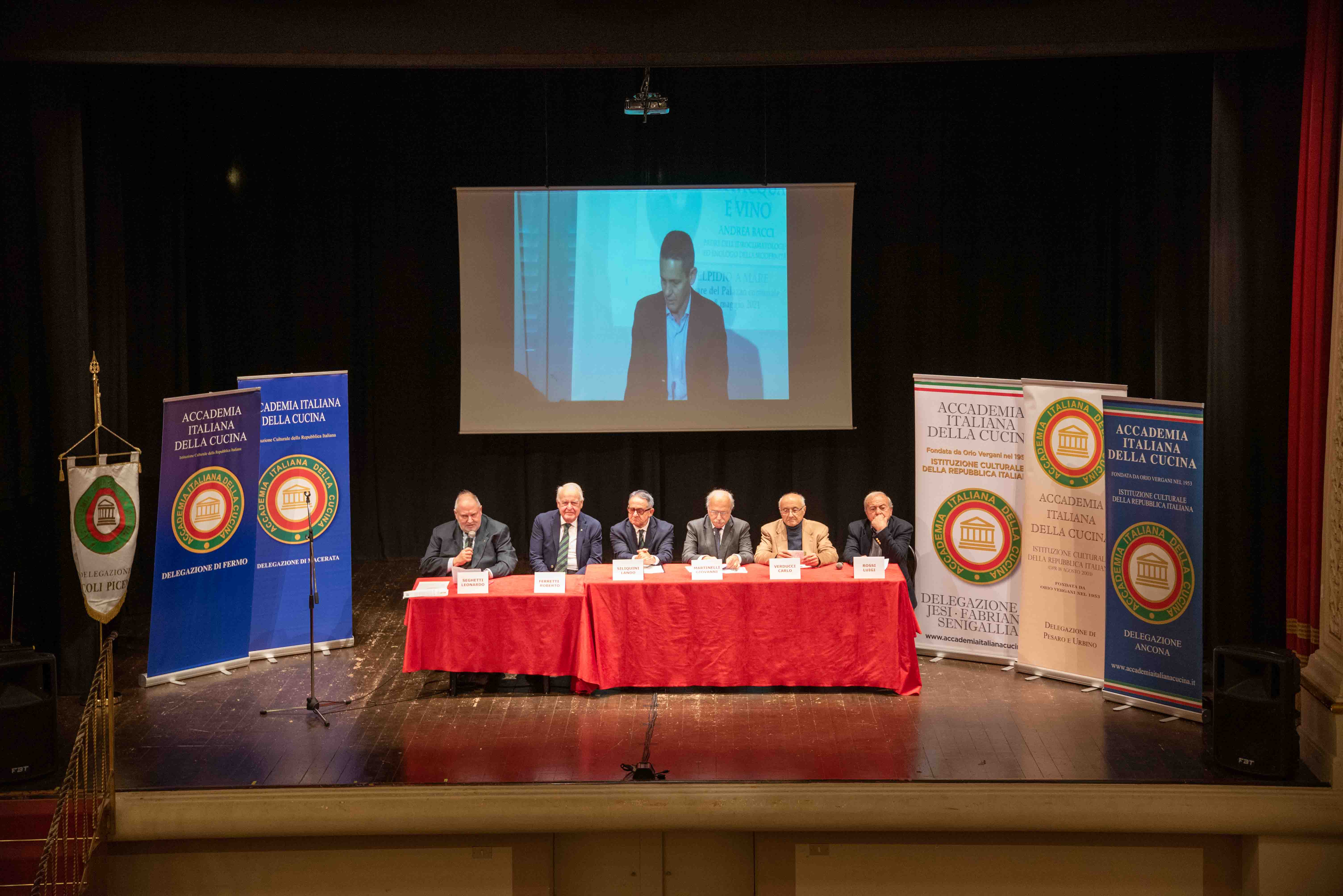 ll 23 e 24 novembre 2024, la Delegazione di Fermo ha celebrato il suo ventennale a Porto San Giorgio, dove fu fondata il 26 novembre 2004. L’evento, organizzato con la collaborazione dell’Amministrazione Comunale, della Pro Loco e con il patrocinio della Provincia di Fermo, del Comune di Fermo e di Confindustria Fermo, ha visto il coinvolgimento degli studenti del Liceo Artistico, che hanno realizzato il manifesto e la cartolina commemorativa con un annullo postale speciale. Il 23 novembre, presso Villa Bonaparte, è stata allestita una mostra delle aziende e dei prodotti d’eccellenza del territorio che hanno ricevuto negli anni i prestigiosi premi Villani e Alberini. Il taglio del nastro è stato effettuato dal Sindaco di Porto San Giorgio e dal Delegato di Fermo, alla presenza di numerose autorità, tra cui Ugo Serra, Segretario del Consiglio di Presidenza dell’Accademia, di Delegati provenienti dall’Italia e di tutti i Delegati Marchigiani. Il 24 novembre, al Teatro Comunale, si è svolto il convegno “La cultura gastronomica nel Fermano: conoscenza e identità”, moderato da Leonardo Seghetti, Ambasciatore della Cucina Italiana nel Mondo e Accademico di Pescara Aternum. Tra i relatori, Lando Siliquini, Roberto Ferretti, Luigi Rossi, Carlo Verducci e Giovanni Martinelli, tutti insigniti del premio Nuvoletti. Le conclusioni sono state affidate al Consigliere di Presidenza Ugo Serra. Dopo il convegno, è stato apposto l’annullo postale sulle cartoline ideate dagli studenti del Liceo Artistico. La giornata si è conclusa con un convivio, arricchito dalla consegna all’Accademico Andrea Recchioni del diploma per i suoi 35 anni di appartenenza al sodalizio.