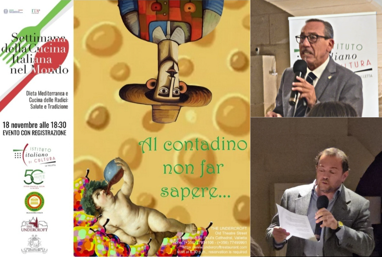 Due eventi principali sono stati organizzati a Malta dalla Delegazione locale per la IX SCIM. Il 18 novembre si è svolto l’evento “Al Contadino non far sapere…”, in collaborazione con l’Istituto Italiano di Cultura, presso il ristorante Undercroft. Durante la degustazione di vini di una storica azienda familiare, presentati da Vincenzo Tubolino, i partecipanti hanno assaporato formaggi abbinati alle etichette proposte e accompagnati da pere. Questo binomio ha offerto l’occasione alla Delegata Massimiliana Tomaselli per spiegare il proverbio “Al contadino non far sapere quanto è buono il formaggio con le pere”, simbolo delle grandi disuguaglianze sociali del passato. L’attore Giovanni Costantino ha letto testi originali dell’epoca, mostrando come il proverbio rifletta le differenze tra i “signori” e i “villani”. L’unione di formaggio e pera rappresentava un lusso esclusivo, che durerà fino rivolta sociale alla fine del Settecento. La serata si è conclusa con i ringraziamenti di S.E. l'Ambasciatore Fabrizio Romano. Il 20 novembre è seguito un evento dedicato alla pizza presso il “Bellavia” con relatore della serata, il Delegato di Parma Gioacchino Giovanni Iapichino che ha svelato come la pizza, a dispetto della sua iconica “italianità”, si rivela sin dalle origini un cibo cosmopolita, con tecniche e ingredienti provenienti un po’ da tutto il mondo. Ha anche sottolineato che, sebbene sembri semplice, la sua preparazione è in realtà più complessa di quanto appaia, come confermato dal titolare della pizzeria Andrea Bellavia che ha spiegato che la sua pizza è realizzata con un impasto che matura per almeno 36 ore, risultando leggera e facilmente digeribile, cotta in un forno a legna che ne esalta il sapore unico. La presentazione è stata accompagnata dalla degustazione di diverse pizze, tra cui Marinara e Friarelli.