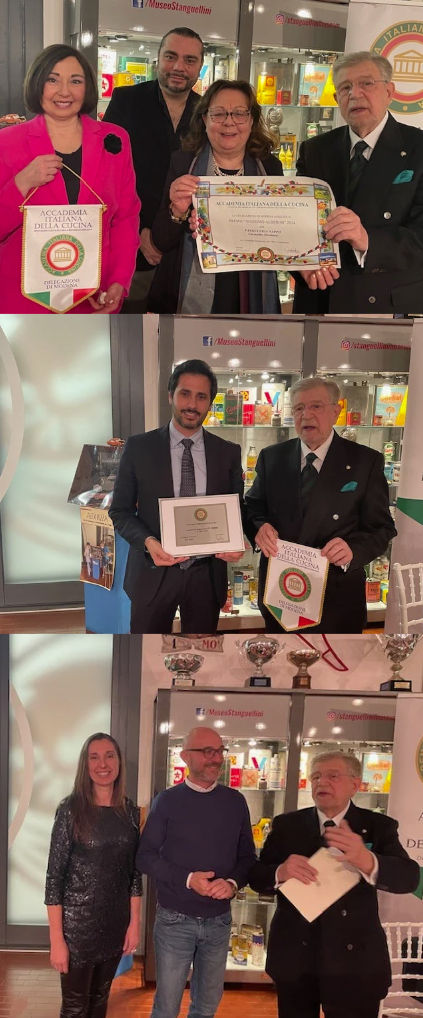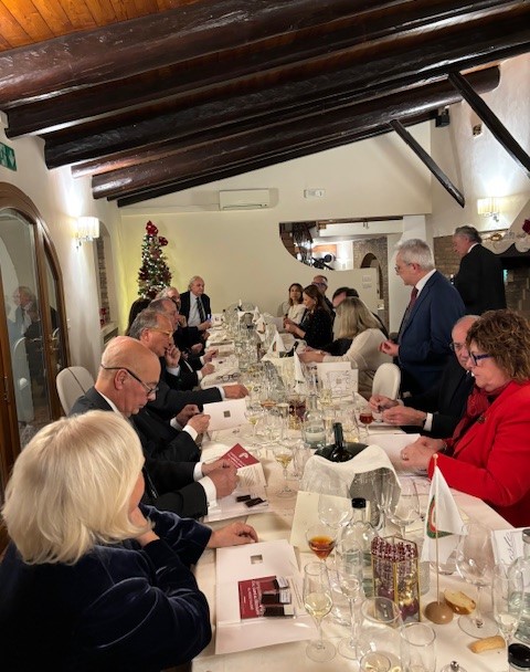 La Delegazione si è ritrovata al Museo Stanguellini di Modena per la tradizionale cena degli auguri e dei riconoscimenti, alla presenza del Coordinatore Territoriale Emilia, Pier Paolo Veroni (foto 1), e della Delegata delle Terre Modenesi, Rosalba Caffo Dallari (foto 2). Numerosi gli ospiti presenti, tra cui il Dr. Ettore Tazzioli (foto 3) di TRC. La serata è iniziata alle ore 19 con la visita al museo, che ospita pezzi unici della collezione di auto. Il Delegato Mario Baraldi, dopo aver ricordato le principali attività svolte nell’anno, ha conferito il Premio Massimo Alberini alla Pasticceria Nappo di Casinalbo, il Gran Premio Triennale "La Rezdòra" (2021-2023) al Ristorante Montana di Fiorano (impossibilitati al ritiro) e il Diploma di Buona Cucina 2023 al Ristorante Franceschetta58 di Modena (foto 4). Dopo la cena, trascorsa in allegria, il Delegato ha concluso l'evento con un “calice ben augurante” per le prossime festività.