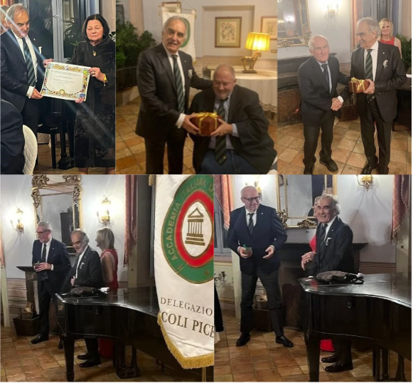 La Delegazione di Ascoli Piceno ha organizzato la riunione conviviale d’autunno all’Agriturismo "Villa Cicchi" di Rosara, preceduta da una conferenza sul tema “I grani ed i pani di ieri, di oggi, di domani”, tenuta dai professori Leonardo Seghetti (Accademico di Pescara Aternum) e Francesco Galiffa, esperti del settore, che hanno affascinato i partecipanti con i loro interventi. A livello culinario, la serata è stata altrettanto apprezzata grazie alla cucina raffinata della chef Maria Elena Cicchi, che ha saputo coniugare tradizione e innovazione, rendendo omaggio alla gastronomia locale. Durante l’incontro è stato anche celebrato l’ingresso della neo-Accademica Alfiera Carminucci, moglie del compianto Segretario di Delegazione, Lino Fava, recentemente scomparso. Un momento particolarmente significativo è stato la consegna del Premio Massimo Alberini a Daniele Ciabattoni, responsabile del "Laboratorio Grano" di Ascoli Piceno, da parte del Coordinatore Territoriale delle Marche, Sandro Marani, e dell’Assessore alla Pubblica Istruzione e Università del Comune di Ascoli Piceno, Donatella Ferretti. Presente all'evento anche il Delegato di Fermo, Fabio Torresi. Infine, il Delegato Vittorio Ricci ha omaggiato relatori e ospiti con dei cadeaux molto apprezzati da tutti.