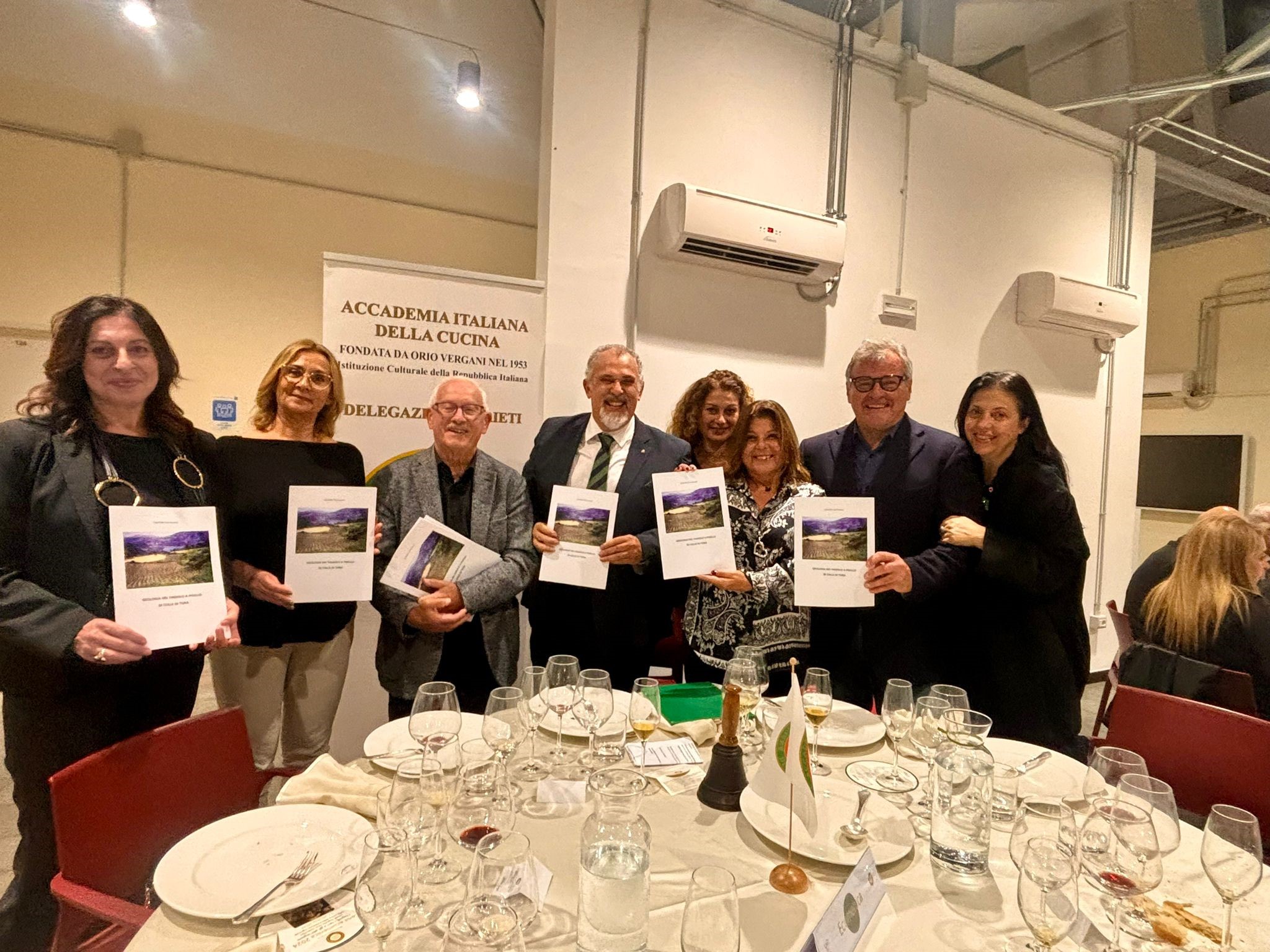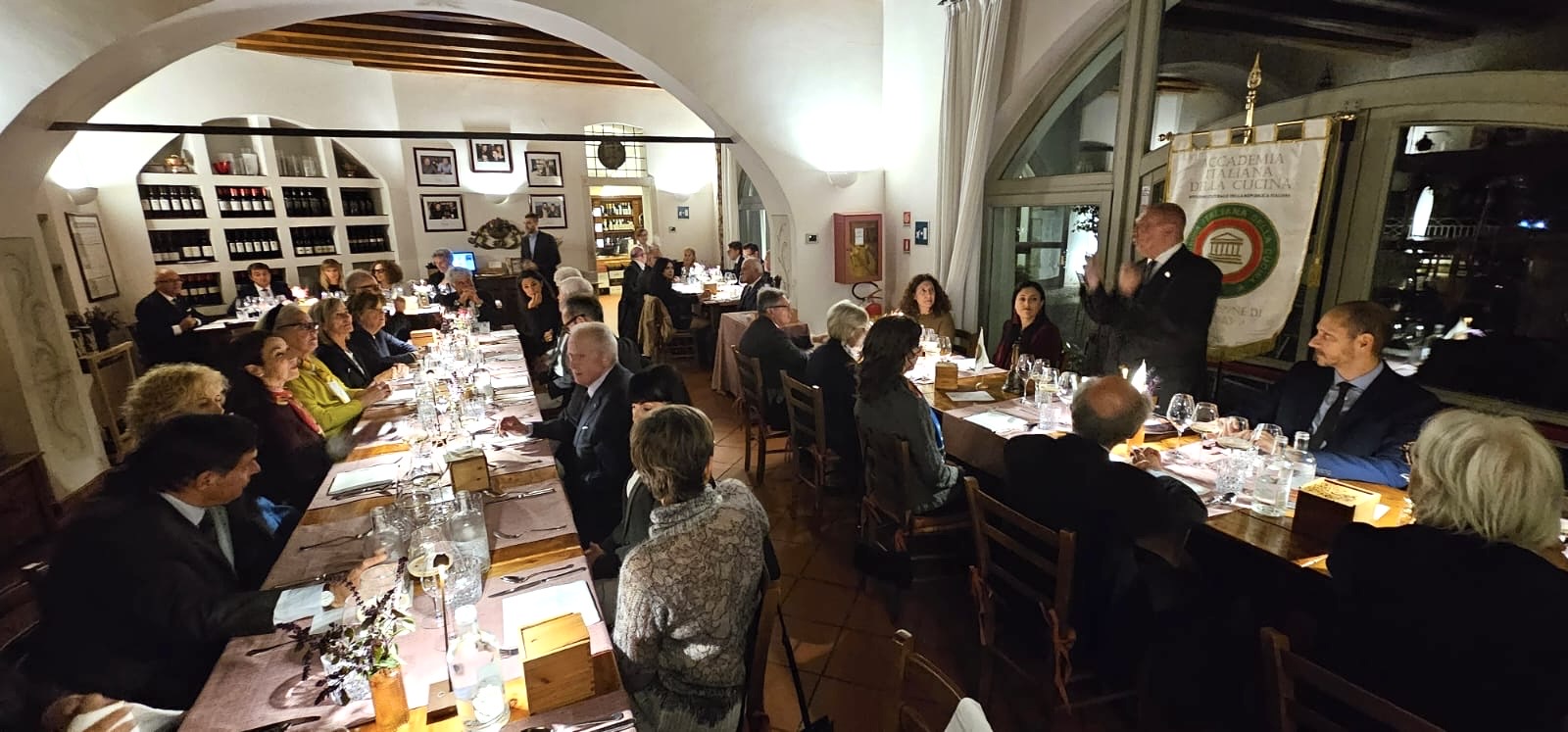 La serata ecumenica al ristorante Oreste La Strega, con grande partecipazione di Accademici, autorità e ospiti, è stata dedicata alle specialità orticole autoctone, oggetto di studio e ricerca da parte della Scuola Superiore Sant'Anna di Pisa, grazie all’Accademico Agostino Stefani che, con un progetto in collaborazione con il Parco Nazionale dell'Arcipelago Toscano, ha promosso l'iscrizione di specie a rischio di estinzione nel Repertorio Regionale delle risorse genetiche locali della Toscana. Tra le varietà presentate, il Fagiolo del Miracolo noto per offrire più raccolti, potendo essere seminato dalla primavera all'estate. È consumabile fresco o secco, ed è ideale per zuppe e contorni. Un altro protagonista è il Fagiolino Jolly Campesi, coltivato fino agli anni '90 a Marina di Campo e Pianosa e recuperato dalla prof.ssa Gabriella Bagiardi grazie a un poliziotto che ne ha continuato la coltivazione. Lo "Zuccagni Orlandini", nella sua "Corografia fisica, storica e statistica della Toscana" del 1835, descrive Pianosa come un "giardino di delizie" per la sua ricca produzione di legumi come fagioli dell'occhio, lenticchie, ceci, cicerchie, fave e piselli. L’Accademico Alvaro Claudi e il Simposiarca Daniele Alberti hanno illustrato la parte gastronomica, ricevendo ottimi riscontri sulla cucina del locale. Alla fine della serata, il ristoratore ha ricevuto un piatto di ceramica con il tema dell'anno.