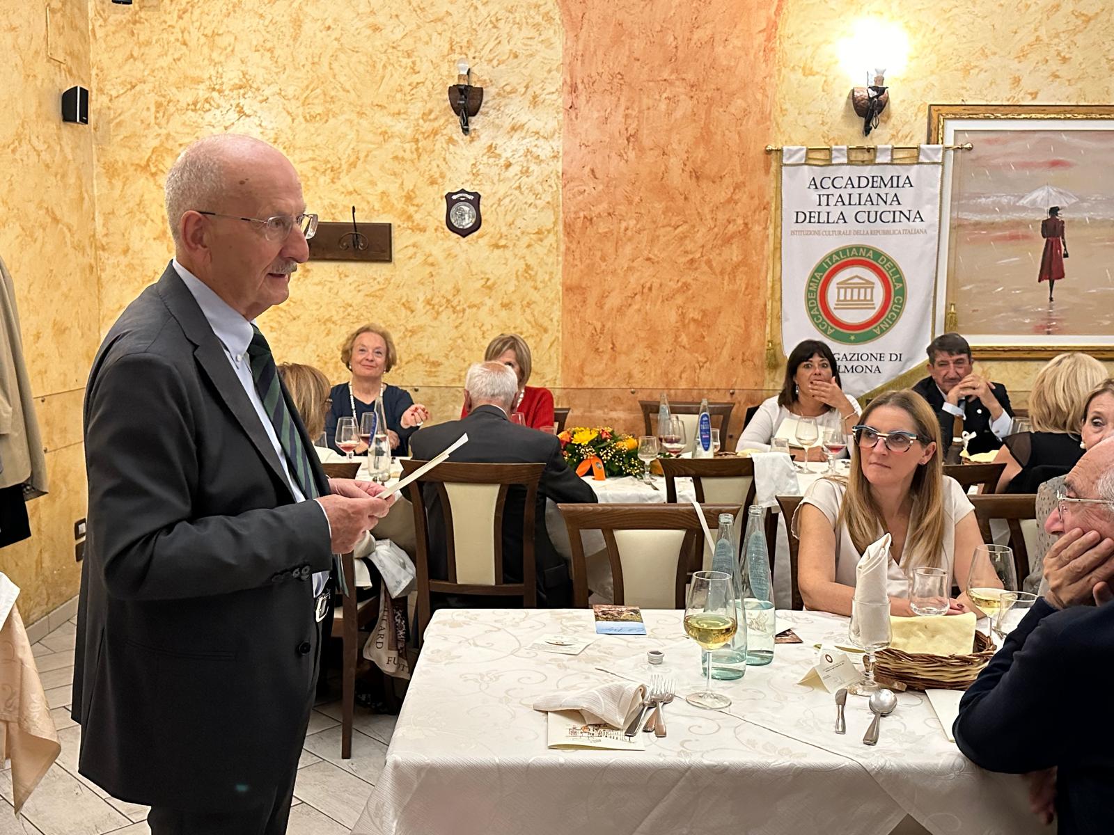Una vera serata accademica all'insegna del buon cibo, della convivialità e dell'amicizia quella del 17 ottobre per la Delegazione di Sulmona. Accademici, postulanti e ospiti si sono ritrovati per la Cena Ecumenica presso il ristorante Il Carro a Pratola Peligna. Il relatore Antonio Santilli ha spiegato sapientemente il significato di questa importante serata e il Simposiarca Gianvincenzo D’Andrea ha catturato l’attenzione dei presenti con la spiegazione delle portate, arricchita da storie di tradizione locale legata ai cibi gustati. Ciliegina sulla torta l'ingresso di tre nuovi Accademici.