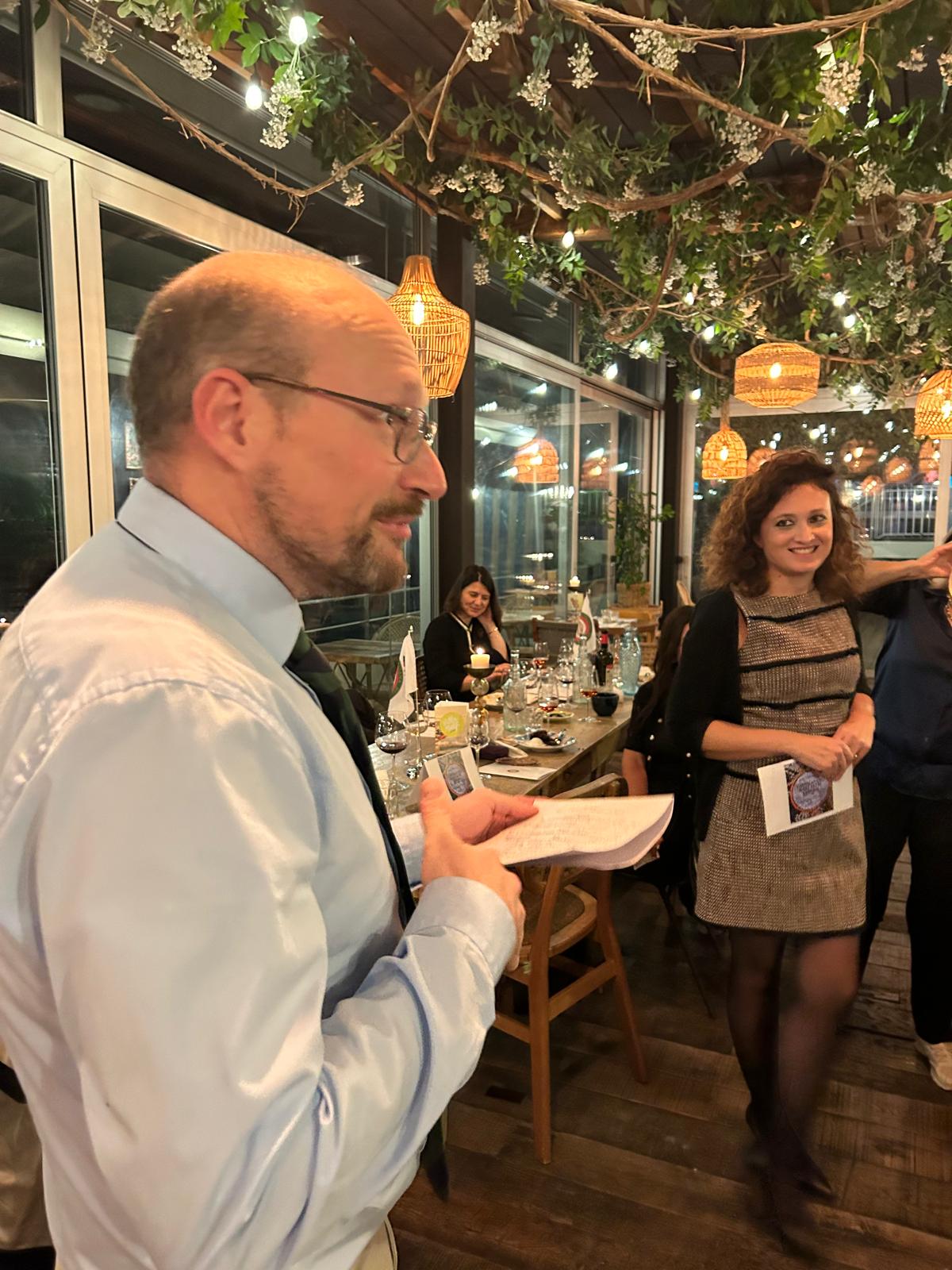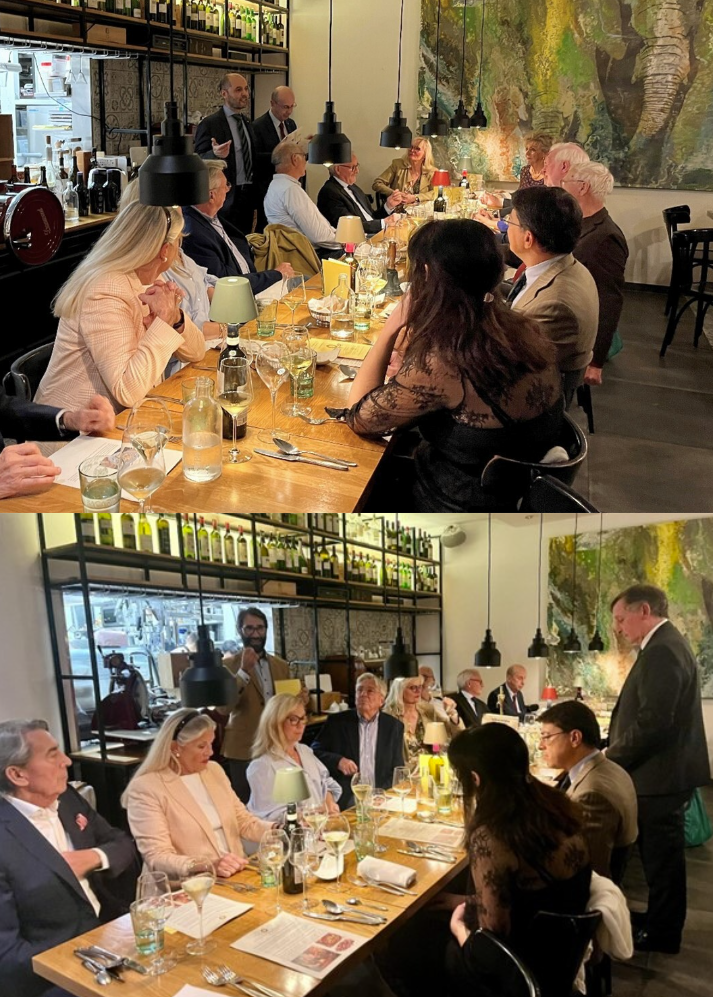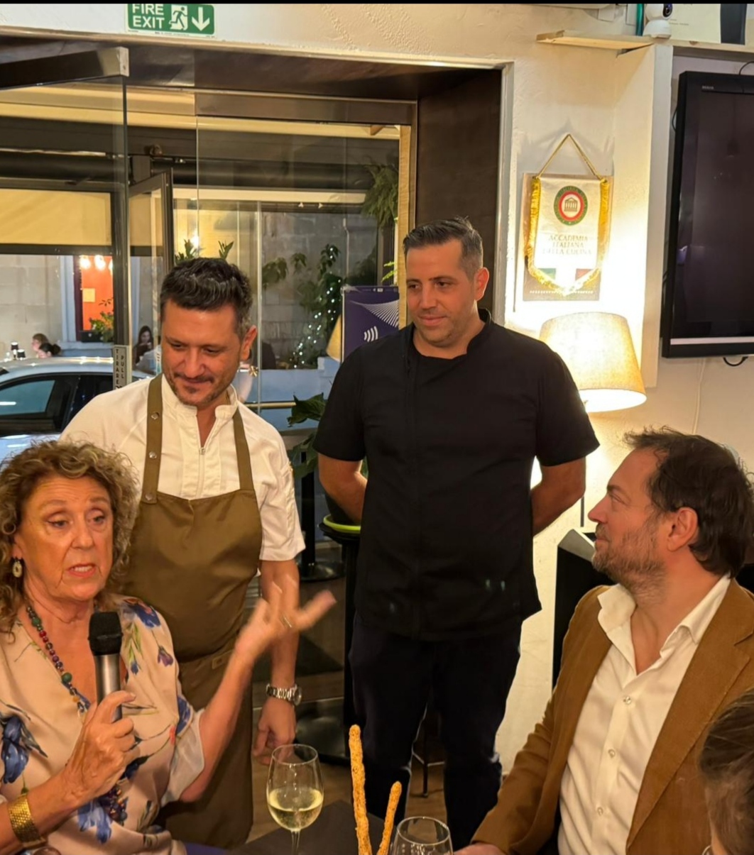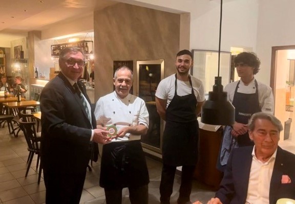 La Delegazione di Colonia si è riunita al ristorante Zippiri per la serata dedicata ai legumi, con un menu elaborato dal Simposiarca Natale Di Rubbo e dallo Chef Marco Piras. La cena ha celebrato l'armonia tra tradizione contadina sarda e modernità, riscuotendo entusiasmo tra i commensali per la cucina e l’atmosfera conviviale. La serata è iniziata con una vellutata di zucca e ceci al rosmarino, seguita da un antipasto di carciofo con pecorino, che ha creato un piacevole contrasto di sapori. Il primo piatto, fregola sarda con ceci e vongole, ha conquistato i partecipanti. Il filetto di manzo al vino rosso e mirto, servito con un contorno di legumi, ha offerto intensi e aromatici sapori. La cena si è conclusa con una mousse al cioccolato bianco e arancia, accompagnata da vini Vermentino e Azenas Cannonau, scelti per esaltare i piatti. Ogni portata è stata descritta con passione dal proprietario del ristorante Michele Lauricella, evidenziando ingredienti di qualità. Oltre al cibo, i partecipanti hanno condiviso storie culinarie legate ai legumi. L’esperienza è stata molto soddisfacente i ed è stata pertanto consegnata la vetrofania del 2024.
