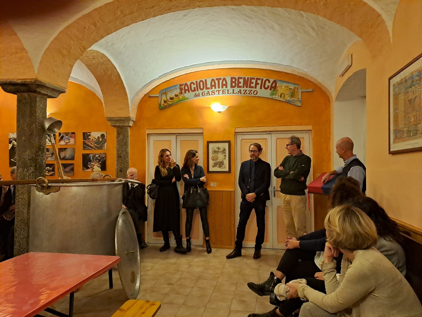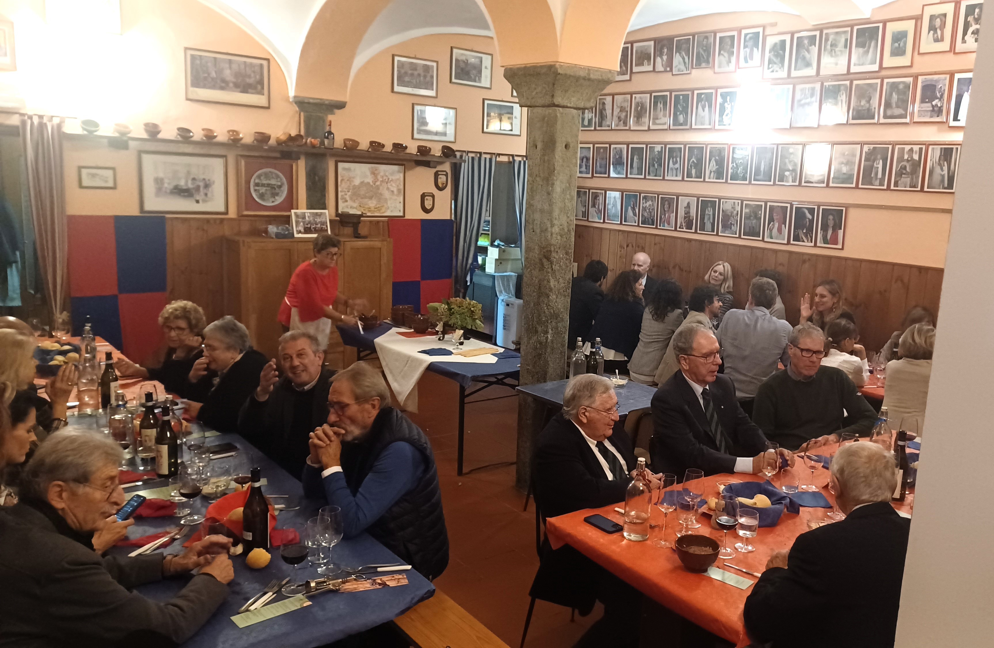 Una serata all’insegna della tradizione e dell’amicizia quella trascorsa presso la sede Fagiolata Benefica del Castellazzo di Ivrea che ha ospitato la Delegazione eporediese per la “Conviviale Ecumenica”. Il connubio con il tema annuale è stato perfetto, nel luogo custode dell’antichissima tradizione dei fagioli grassi: fagioli cotti per l’intera notte con zampini, ossa di maiale, lardello e soffritto di cipolle, serviti con cotenne (preive) e cotechini, che affonda le sue radici nel Trecento con la Confraternita dello Spirito Santo, che organizzava la distribuzione pubblica e gratuita di cibo per i poveri. Il presidente della Fagiolata Giorgio Masseroni ha introdotto la serata, ripercorrendo la storia e i riti che conducono alla domenica di Carnevale, quando, in piazza Maretta, con la benedizione del vescovo, comincia la distribuzione dei fagioli grassi a tutta la cittadinanza. Con i fagioli grassi, anche un assaggio di panissa vercellese, piatto che anche nel Canavese non manca mai. In cucina, Pierangelo Cardini, cuoco della Cascina dell’Allas di Bollengo che ha ospitato l’ecumenica 2022 nonché “capo” dei fagiolari. La Fagiolata del Castellazzo è menzionata proprio nel volume annuale della Biblioteca di cultura gastronomica e non poteva, dunque, esserci modo migliore di ritrovarsi per l’annuale Cena Ecumenica.