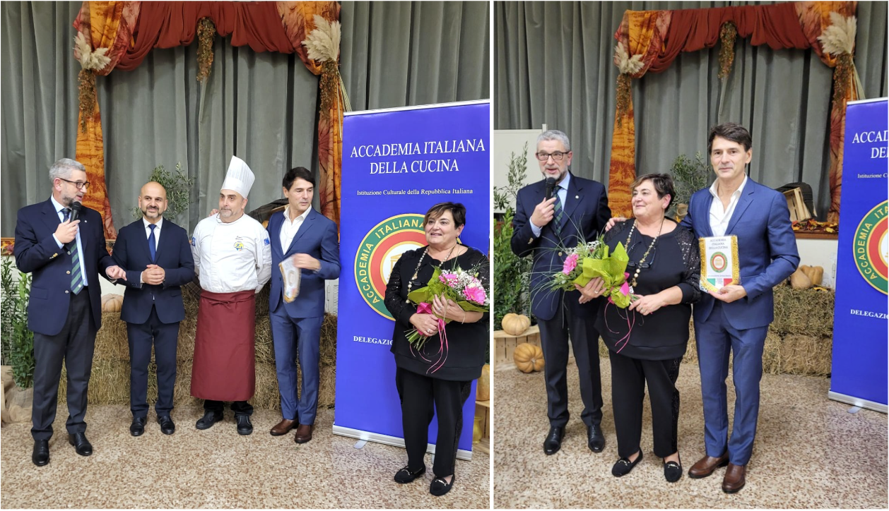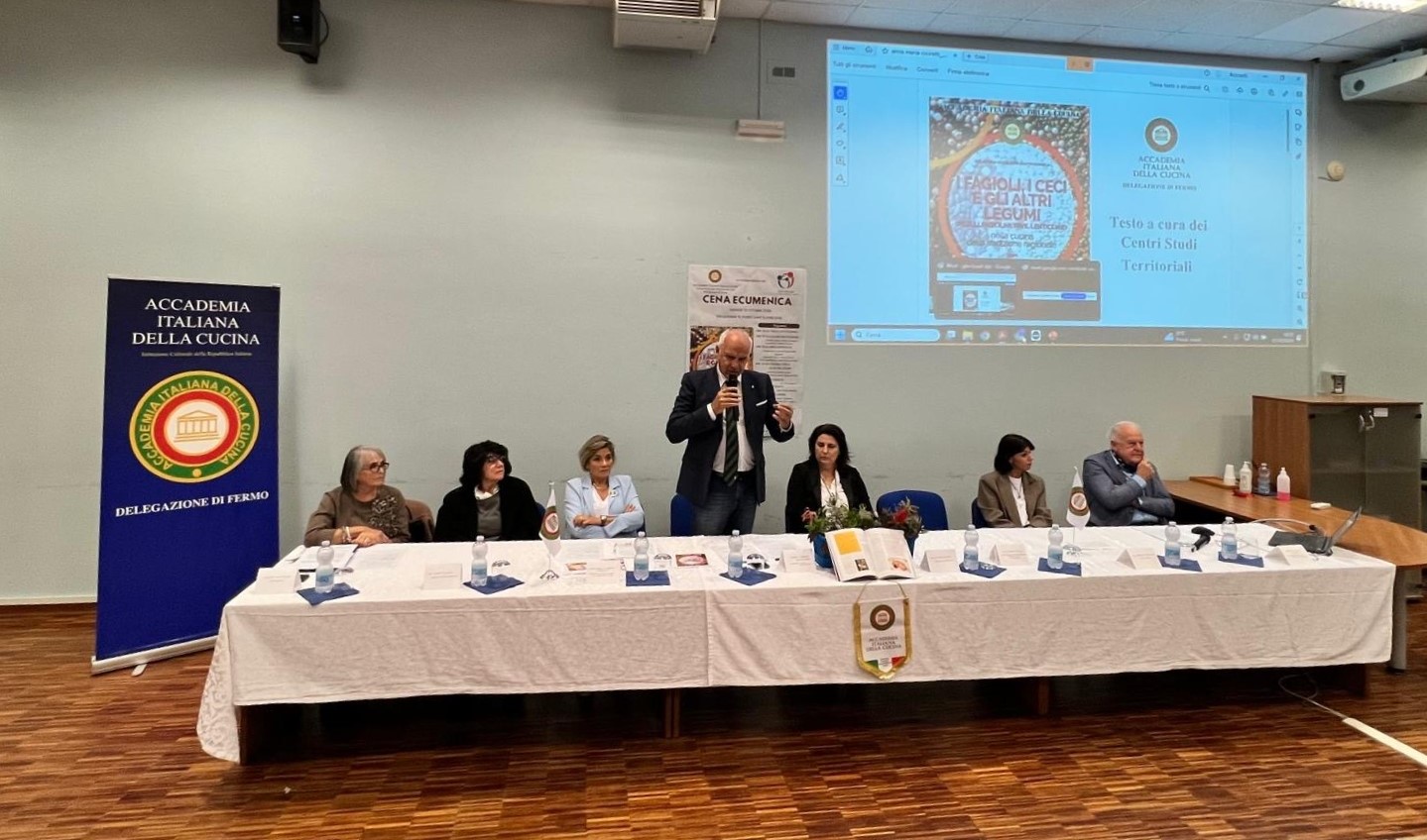 Un connubio perfetto tra tradizione e innovazione ha caratterizzato la partecipata cena ecumenica 2024 organizzata dalla Delegazione di Macerata. Ad Appignano (MC) da 22 anni si tiene Leguminaria, un progetto dedicato alla valorizzazione dei legumi. Alla presenza del Sindaco di Appignano, Mariano Calamita, che ha concesso il patrocinio all’iniziativa e con la fattiva collaborazione dell’istituto alberghiero Varnelli di Cingoli, i commensali hanno potuto apprezzare l’incontro dei legumi con il pescato dell’Adriatico, piatti innovativi ed interessanti preparati dai docenti e dagli alunni dell’istituto. La parte culturale è stata affidata al componente del Centro Studi Territoriale Marche e Consultore di Macerata Maurizio Massi che he ha presentato antiche ricette locali a base di legumi, approfondendo le loro proprietà nutritive. Alcuni produttori hanno parlato della coltura dei legumi, in particolare, del fagiolo “Solfì”, del cece denominato “Quercia” (Cicer arietinum) e della roveja (Pisum arvense). Non è mancata un’esposizione di ceramiche caratterizzanti questo Comune che fa parte delle 57 città della ceramica.