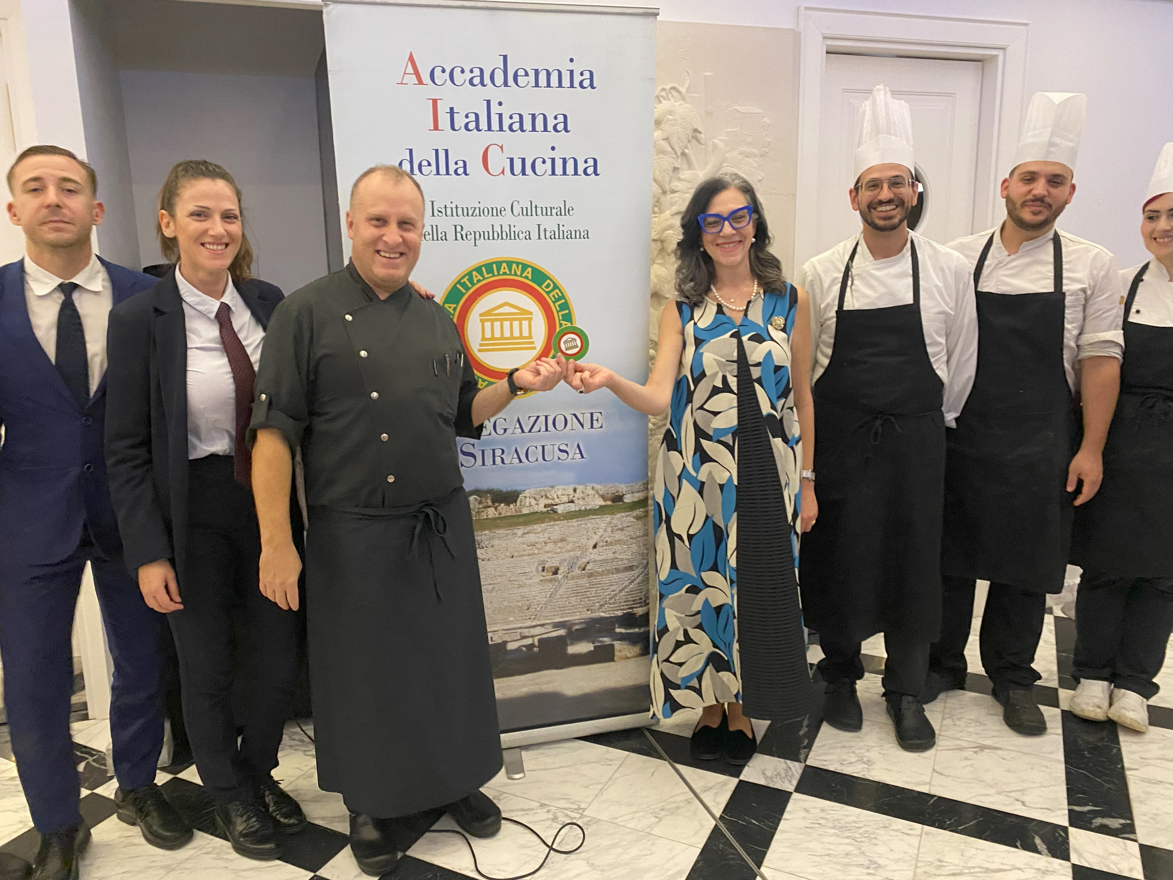 La cena ecumenica del 2024 si è svolta a Siracusa nel ristorante Incanto, una location che non tradisce il suo nome: una terrazza che si affaccia sul porto piccolo dell’isola di Ortigia. Singolare l’edificio che la ospita, un ex palazzo delle poste trasformato in Hotel di lusso, una sorta di moderna agorà tra mitologia greca e sapori locali. Lo chef Salvatore Barbara, seguendo le indicazioni della Delegazione, ha preparato un menù a tema, raccontando attraverso i piatti l’importanza dei legumi. La serata si è svolta in un clima conviviale e sereno e si è caratterizzata per la presentazione del testo sui legumi, illustrato dalla Delegata Rosalia Maria Sorce e dalla Consultrice Anita Rubera, componente del CST Sicilia Orientale; a seguire l’accoglienza della nuova accademica Concetta Messina.
