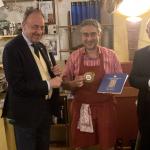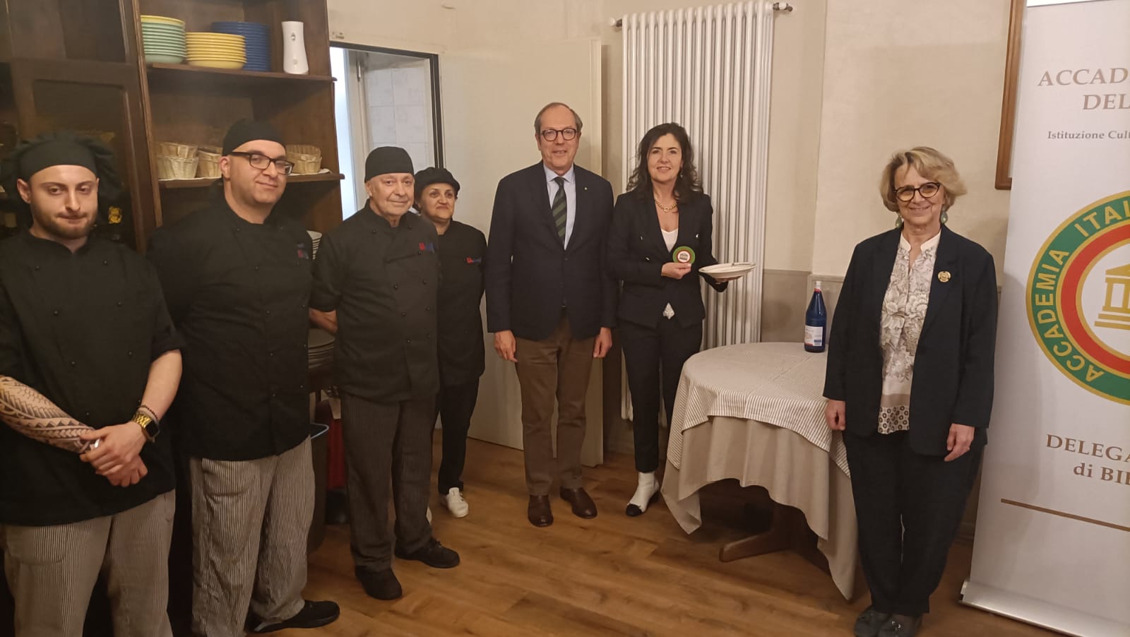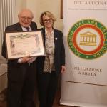 Serata all'insegna della polenta, piatto tipico biellese sia in montagna che in pianura. Il Simposiarca Massimo Tosetti ha scelto un ristorante di Oropa risalente al 1923, il “Ristorante Valfrè”, per illustrare il tema scelto. Con la titolare Elisabetta Maffeo, Tosetti ha proposto tre piatti di polenta che una volta erano usuali nelle famiglie, oltre alla classica polenta concia di Oropa. Sono anche stati serviti due tipi di salami e di formaggi e un gelato di crema a testimoniare la tendenza del ristorante a servirsi di prodotti di prima qualità di provenienza locale. Durante la serata non sono mancate le dissertazioni da parte della Delegata Marialuisa Bertotto e del Simposiarca Tosettti sull'origine del ristorante e sulla polenta. La piacevole serata è stata l'occasione per festeggiare i 35 anni di appartenenza all'Accademia di Giorgio Lozia, membro del Centro Studi territoriale Piemonte, al quale la Delegata ha consegnato il distintivo e l’attestato di appartenenza.