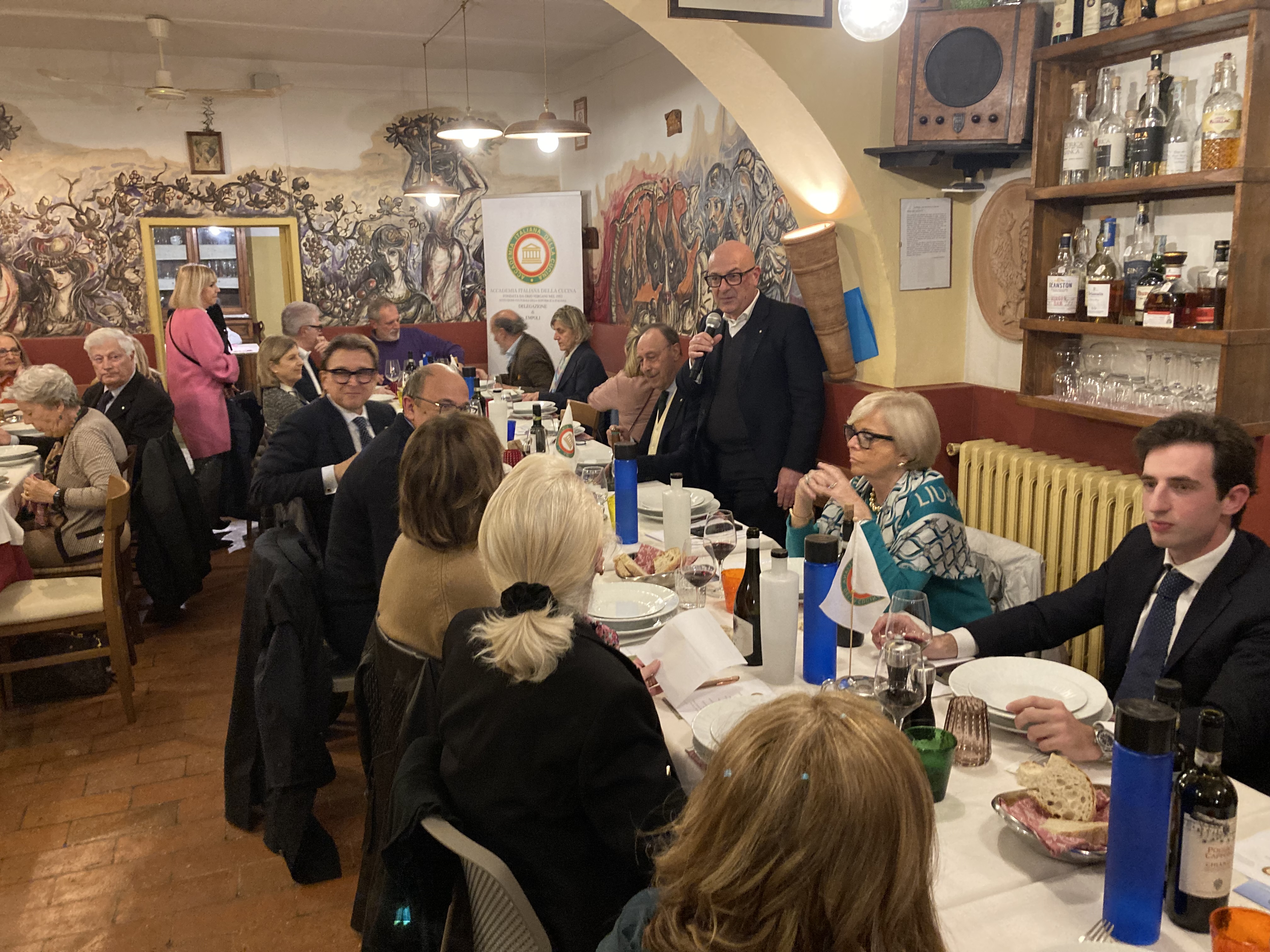 Grande partecipazione di Accademici e ospiti alla riunione conviviale organizzata presso la storica Osteria Bonanni al Turbone (dal 1920), da tutti conosciuta come “Capounto”. La serata è iniziata con le parole di benvenuto del Delegato Massimo Vincenzini e del Simposiarca Luca Giraldi che ha raccontato la storia di “Capounto” e delle sue tipiche ricette toscane tramandate da quattro generazioni, ponendo l’accento sull’importanza del rispetto della tradizione unita all’utilizzo di materie prime del territorio, in primis l’olio. I partecipanti hanno gustato una selezione dei piatti della cucina di Capounto, dove il tempo e i sapori si sono fermati: carciofi e pomodori in teglia, pici all’aglione, braciola alla livornese con fagioli all’uccelletto e schiacciata alla fiorentina. Agli intervenuti è stata donata una raccolta di ricette dei piatti presentati nel corso della serata. Il gradimento dei partecipanti si è concretizzato con la consegna della vetrofania da parte del Delegato.